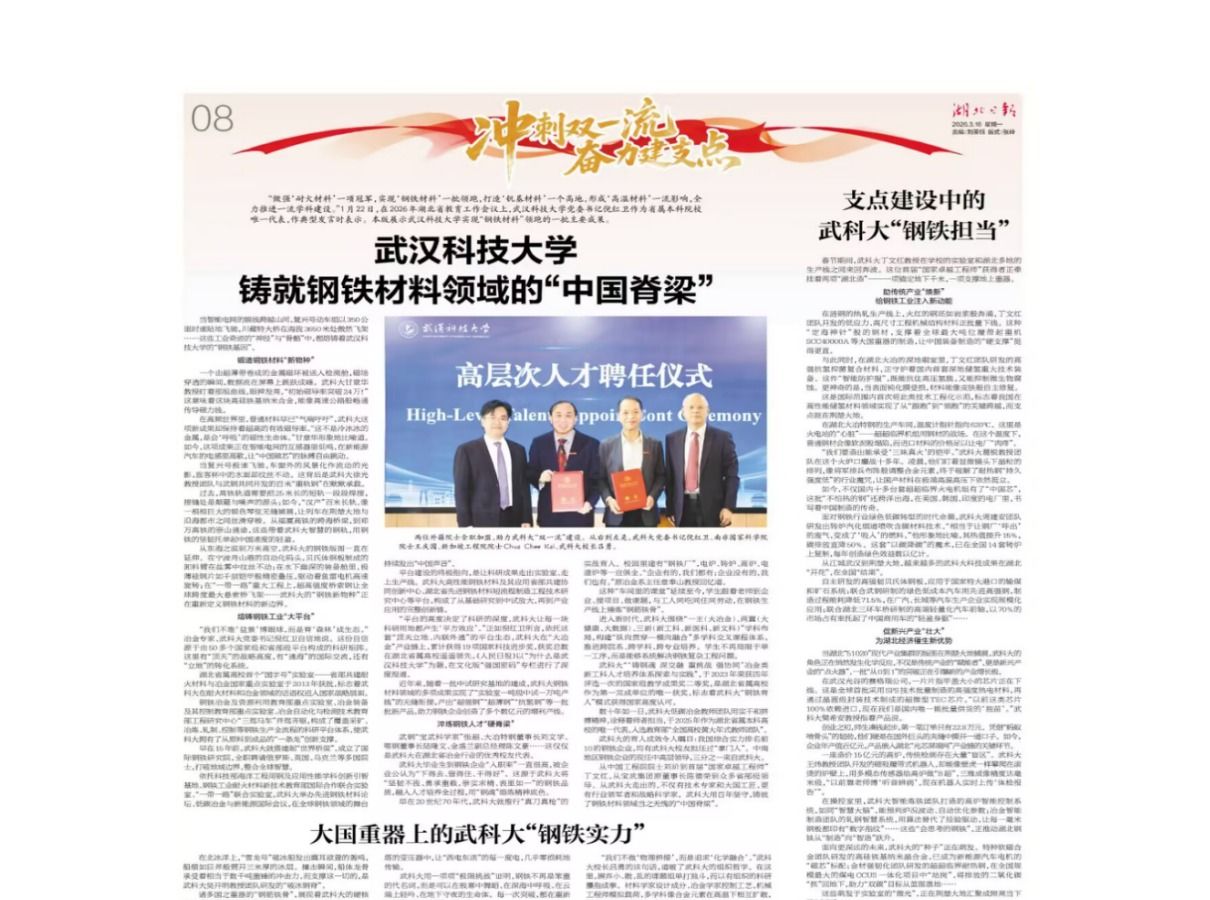 金属材料工程专业的课堂上,她是传道授业解惑的首批省级“新工科”课程负责人;深夜实验室的灯光下,她是攻克氢脆难题的“钢铁女侠”;学生生病住院时,她是温情煲汤的“黄妈妈”;国际学术会议上,她是用流利英语讲述中国材料人创新故事的推广者。作为365完美材料学部二级教授、博士生导师,“楚天英才计划·教育人才”楚天名师和“香涛学者”特聘教授,黄峰教授以“累与快乐并行,爱与奉献同步”的信念,在三尺讲台与微观世界间,...