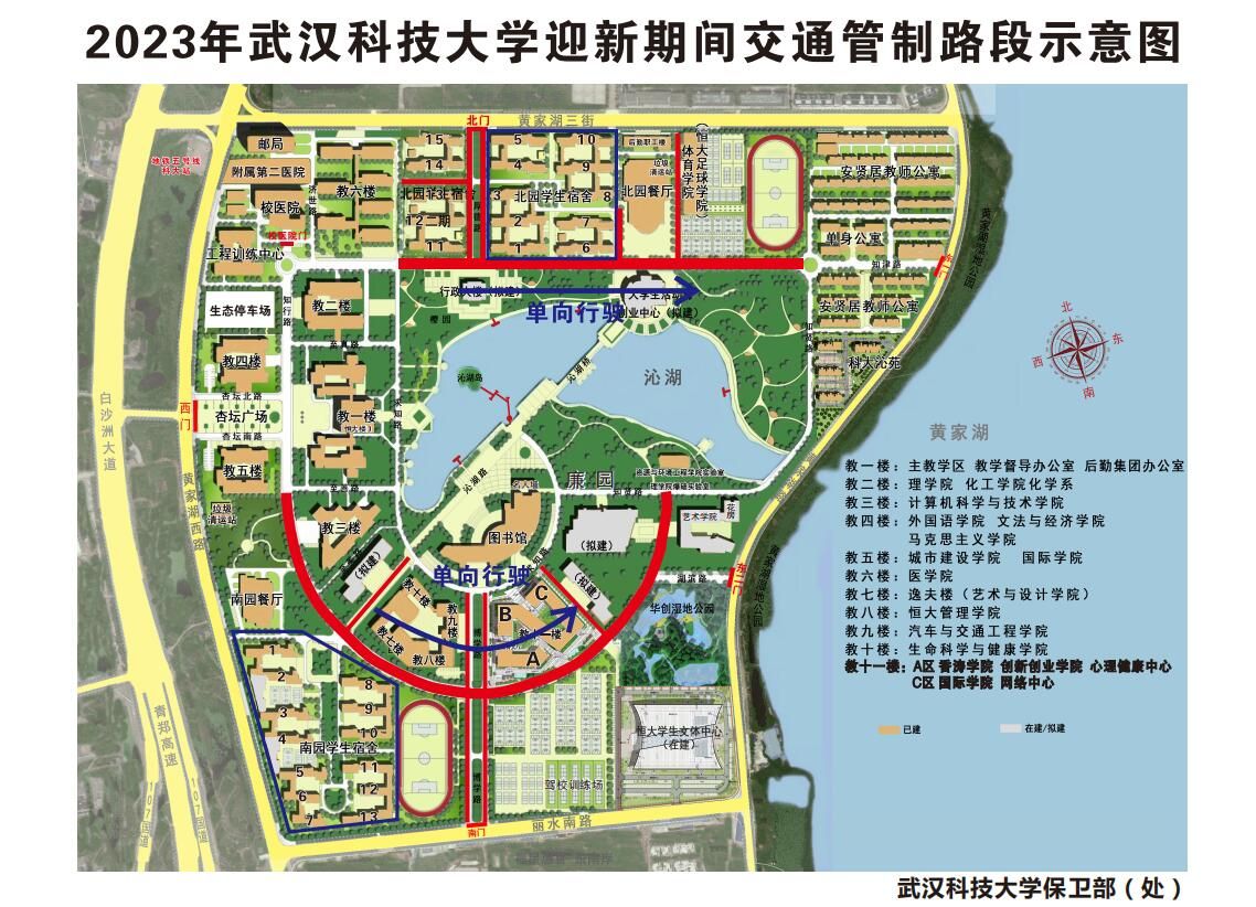 二、迎新期间黄家湖校区进出通道调整为“二进四出”:西门和东门进,东门、西门、南门和北门均可出校。请驾车人员听从引导人员指挥,避开禁行和限行路段就近出校。