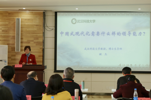 会议的主题报告阶段由湖北城市建设职业技术学院党委书记、研究会副会长程超胜主持,研究会会长、管理学院院长邓旭东教授作2022年度研究会工作报告,总结研究会在强化科学理论研究、优化组织管理建设、加强信息宣传推广、拓展对外交流与合作等方面所做的工作。研究会秘书长周勇教授作2022年度财务报告以及研究会理事增选情况报告。365完美体育原正校级干部、教授、博士生导师顾杰作了题为《中国式现代化需要什么样的领导能力?》的主题报告。顾杰教授在报告中深刻阐释了中国式现代化的五个基本内涵和九个本质要求,详细说明了中国式现代化与新时代领导力的关系,并从十个方面提出如何提高推进中国式现代化急需的领导能力建设。