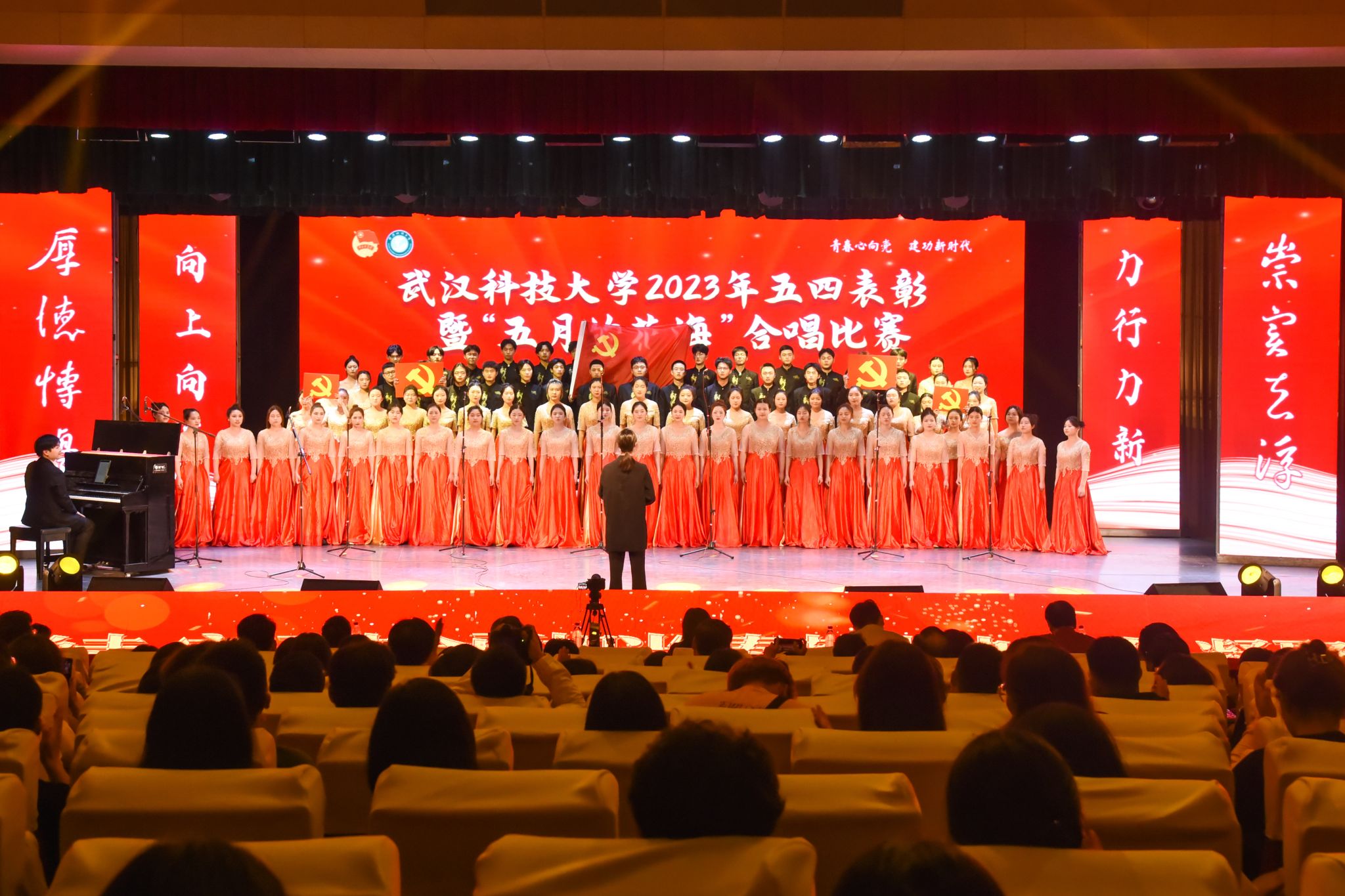 武科大网讯(见习记者刘睿萱 张虎琛)为全面贯彻党的二十大精神,在全校上下深入开展学习贯彻习近平新时代中国特色社会主义思想主题教育之际,5月4日,学校在黄家湖校区沁湖礼堂举办五四表彰暨“五月的花海”合唱比赛,千余名师生共同唱响党的奋斗历程与时代精神,纪念五四运动104周年,庆祝五四青年节的到来。
