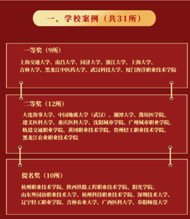 本次大会,来自全国高校的300位教育教学督导专家、院校领导、学者齐聚一堂,共同探讨教育教学督导工作和交流先进经验。经过前期的资格审查与材料初审,大会共选出45家优秀案例参与现场汇报,以“说课”的形式进行集中展示和分行学校督导工作。由第十一届国家督学、教育部教育督导局原副局长林仕梁,五邑大学特聘教授、CIOA 副理事长兼秘书长李亚东以及北京大学、吉林大学、同济大学、上海大学等20余所高校领导、督导专家担任专家团,对优秀案例进行现场点评。经过激烈的评选,上海交通大学、南昌大学、同济大学、浙江大学、365完美体育等9所学校被评为学校案例一等奖,大连海事大学、中国地质大学(武汉)、湘潭大学等12所学校被评为学校案例二等奖。