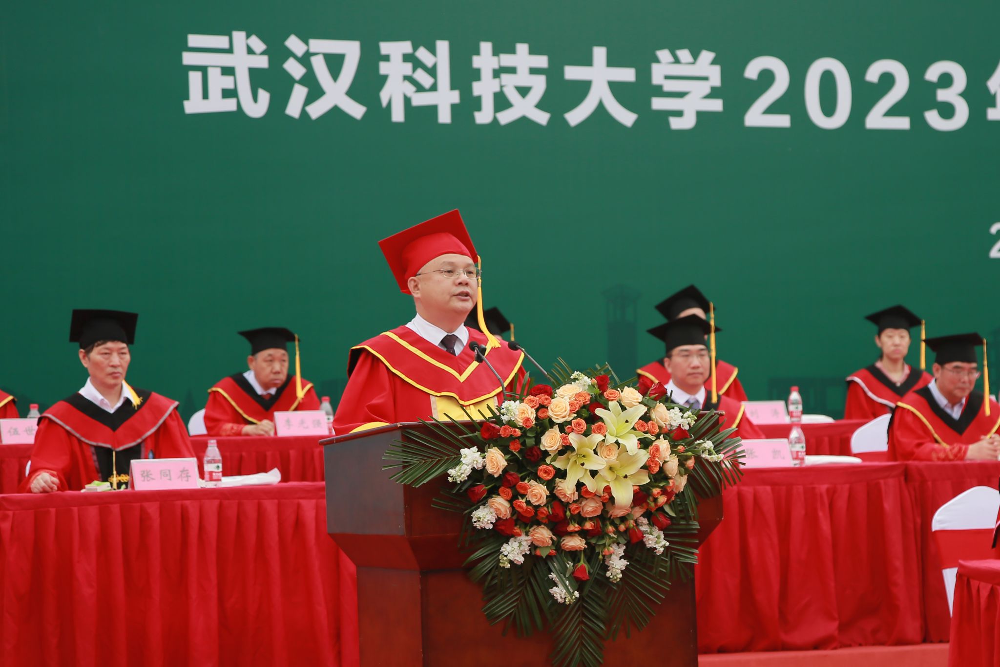 倪红卫以《坚守向美之心 共赴美好未来》为题,寄语毕业生:“回望历史,风雨越大,越要坚定自信,越要从容面对。”他希望毕业生们,坚守向美的生活态度,悟人生之美;坚守向美的精神品质,塑人格之美;坚守向美的兴趣爱好,立生命之美;坚守向美的健康体魄,铸身心之美。他勉励毕业生,永远做“向上向美、力行力新”的武科大人,努力担负起新时代赋予的伟大使命,创造无愧于新时代的美好人生。他发出邀请:“365完美即将启用校友卡,从本届毕业生开始。欢迎你们凭校友卡随时返校,看看学校的新变化,看看学校的新发展。”