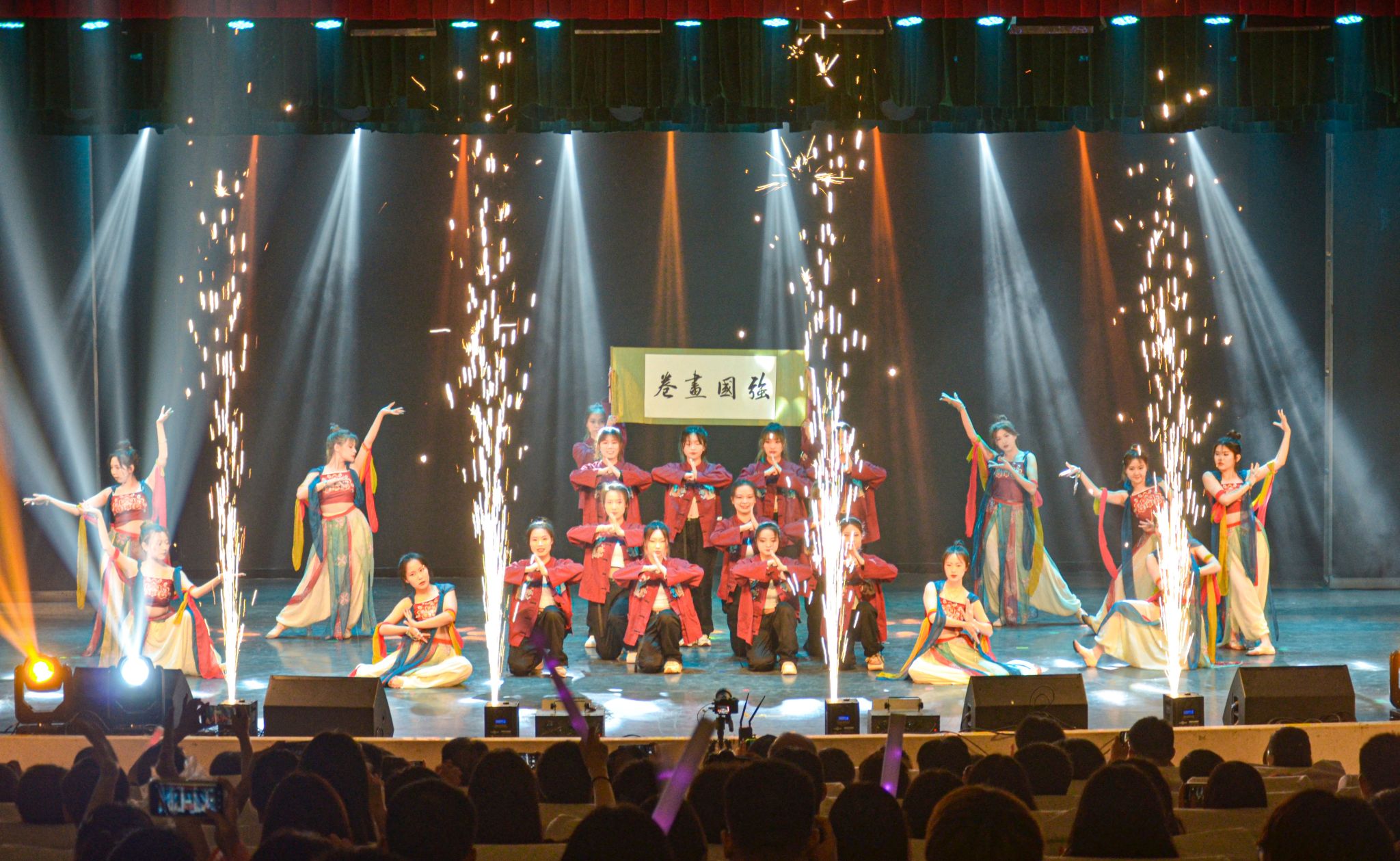 在舞蹈《千年画卷》中,飞天侍女穿越回现代,在琵琶声中翩翩起舞,讲述敦煌壁画里的故事。演员们穿着带有盘扣龙纹的唐装,将功夫元素融入表演中,执笔挥墨,塑造出炎黄子孙的坚韧不拔。当写有“强国画卷”的书卷徐徐升起,现场爆发出热烈的掌声。“很荣幸能参与到这样一场极具特色的表演中,作为青年一代,我们有义务将中国的传统文化不断传承与发扬!”节目负责人饶雯轩说道。