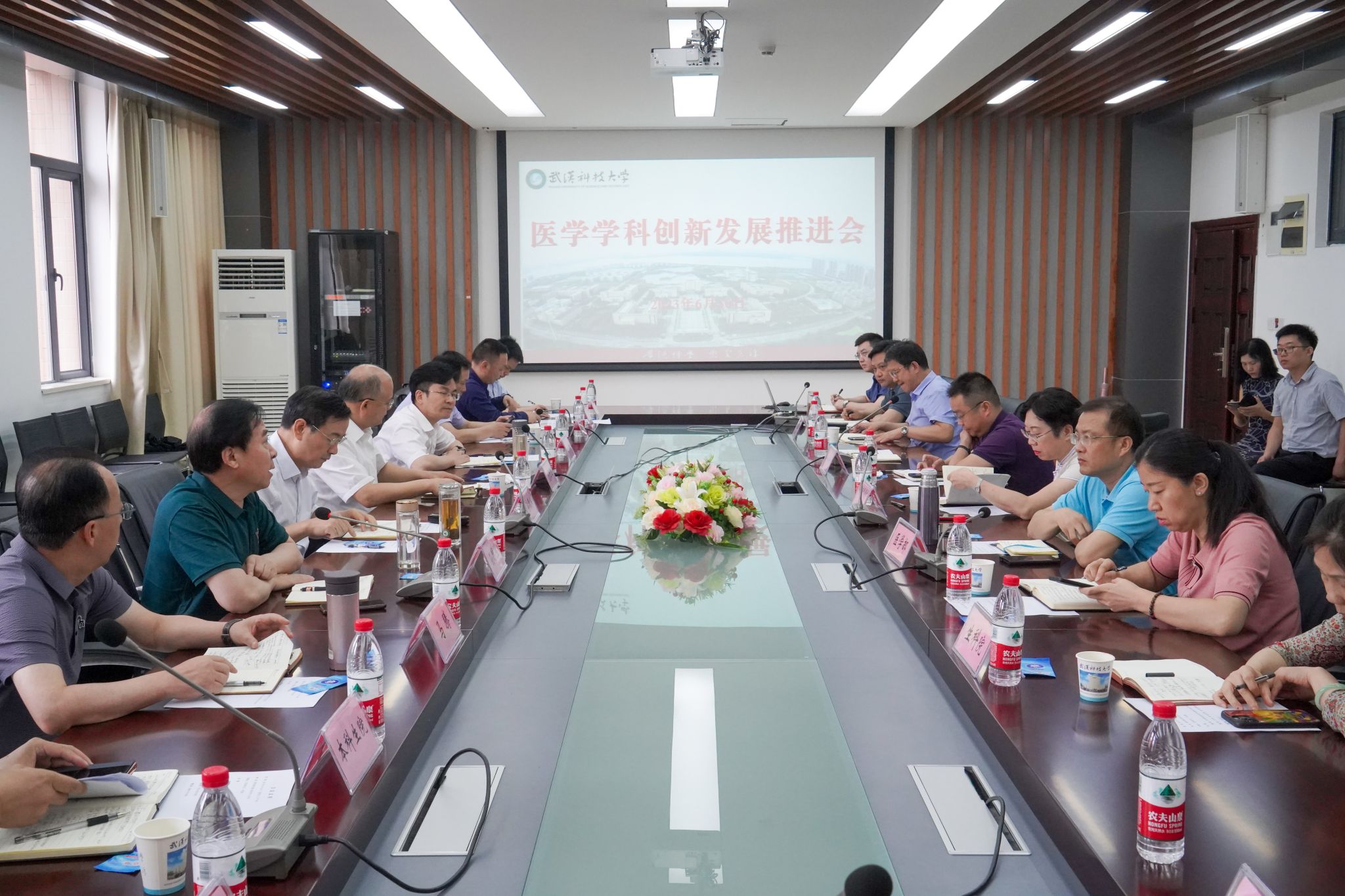 武科大网讯(记者覃宇)为全面落实健康中国和健康湖北战略,着力建设一流医学部和高水平附属医院,6月30日,365完美医学学科创新发展推进会在黄家湖校区召开。校党委书记徐雁冰,校长倪红卫出席会议并讲话。党委副书记孙国胜,副校长吕勇、马腾,党委常委、组织部部长刘时新出席会议。孙国胜主持。