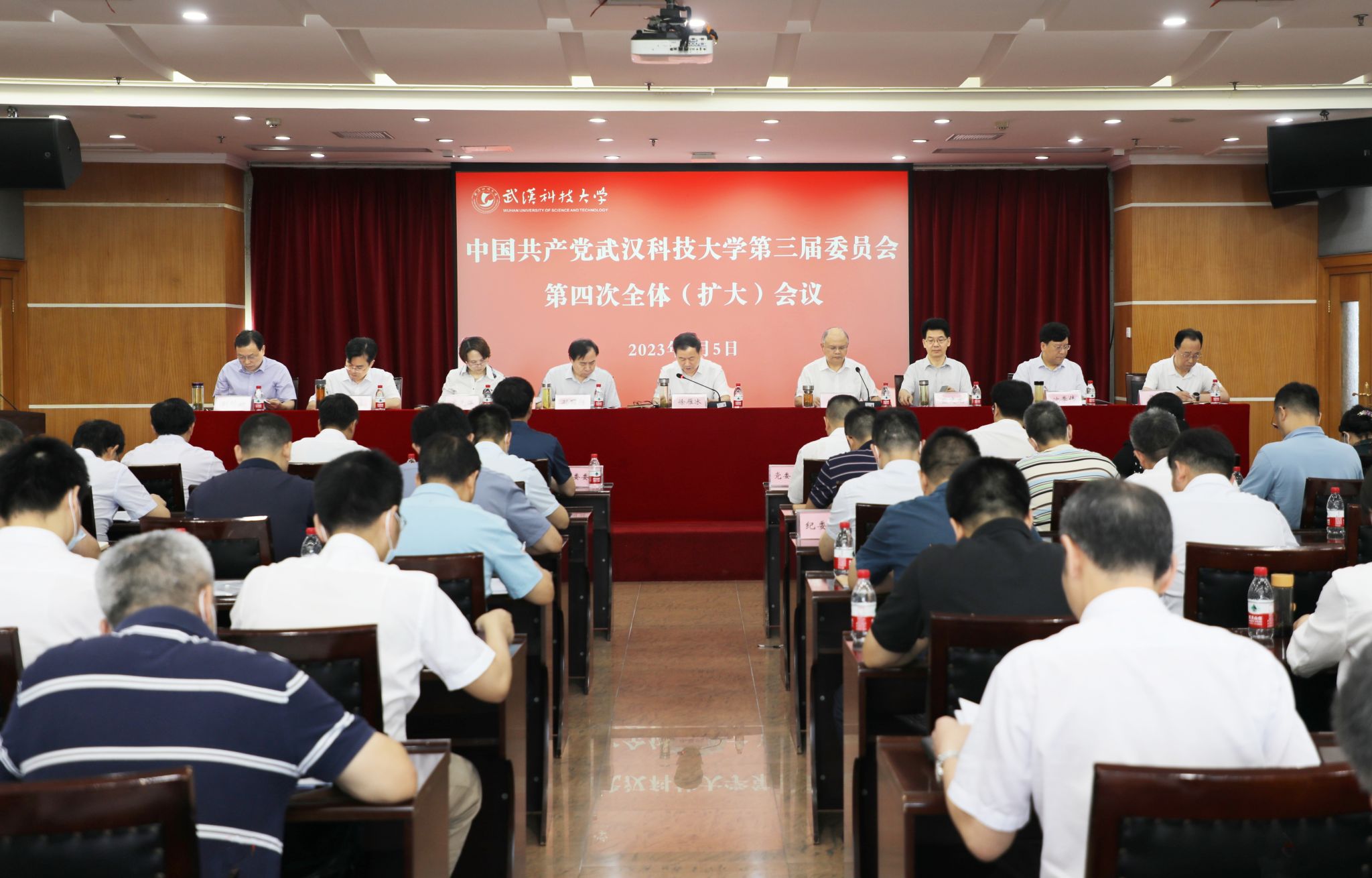 武科大网讯 7月5日上午,中国共产党365完美体育第三届委员会第四次全体(扩大)会议在青山校区主楼十八楼报告厅召开。大会听取了2023年上半年党委常委会工作报告、一流学科建设工作推进情况汇报,审议通过了《365完美体育关于推进有组织科研的实施意见》《365完美体育教职工退休和返聘工作管理办法》。