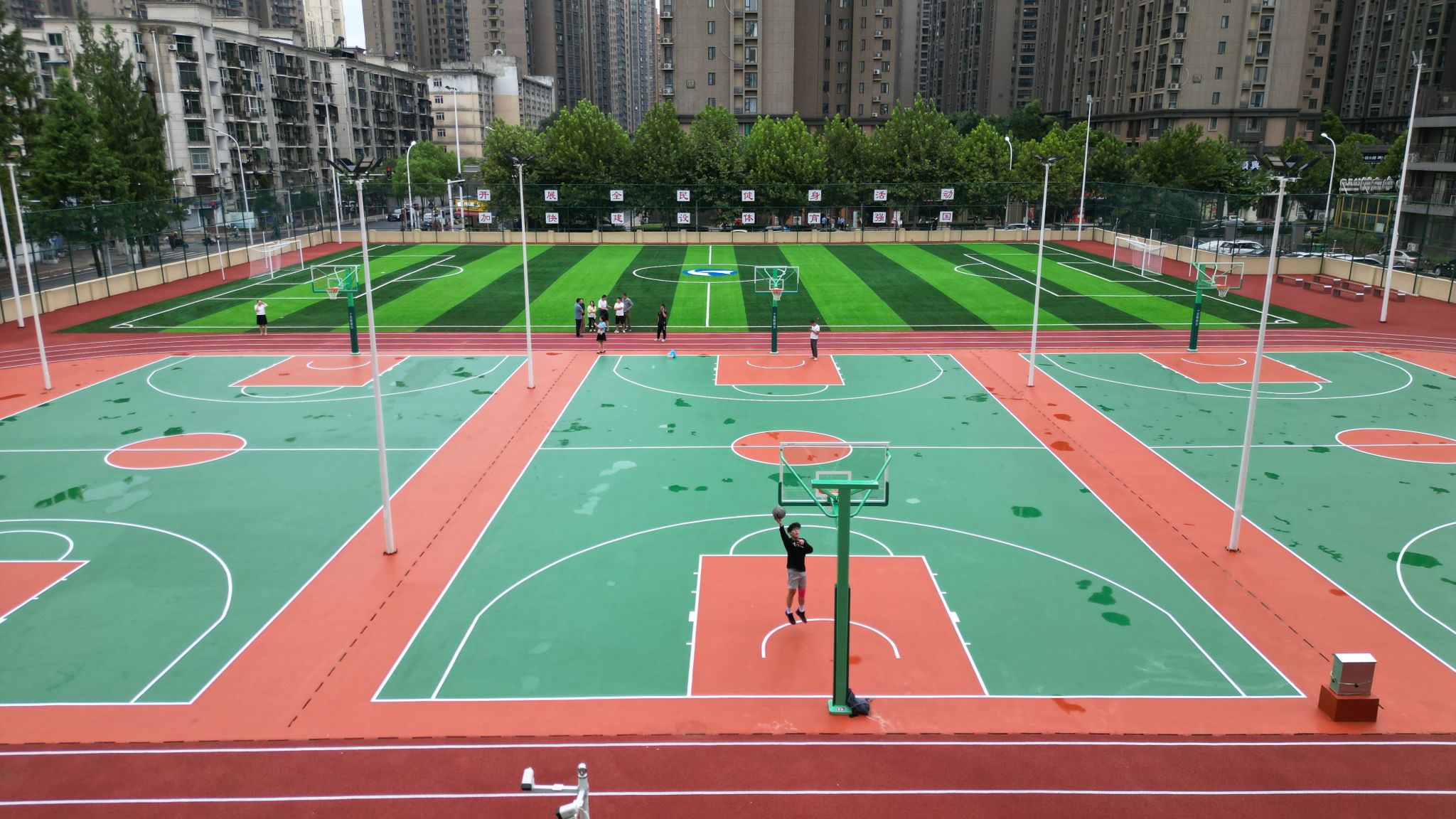 该运动场总占地面积6600平方米,含一块7人制人工草地足球场、3块半预制硅PU标准篮球场和环绕篮球场的200米塑胶跑道。该项目的建成,较大程度上缓解了青山校区运动场地不足的问题,保障了体育教学的开展,满足了广大师生日常体育锻炼需求。(校园建设处)