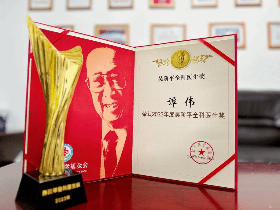 吴阶平医学奖是在国家卫生健康委支持下,获得国家科技部批准的我国医药卫生领域的高级别奖项,为了推动中国全科医学科学技术进步,促进全科医学事业的发展,激励广大全科医学工作者积极投身全科医学事业。吴阶平医学基金会设立“吴阶平全科医生奖”。每年评选一次,每次不超过10人,授予促进全科医学科学技术进步,为我国全科医疗卫生事业发展作出突出贡献的个人。本年度全国共有10名全科医生获奖,谭伟教授为其中之一,也是湖北省唯一。