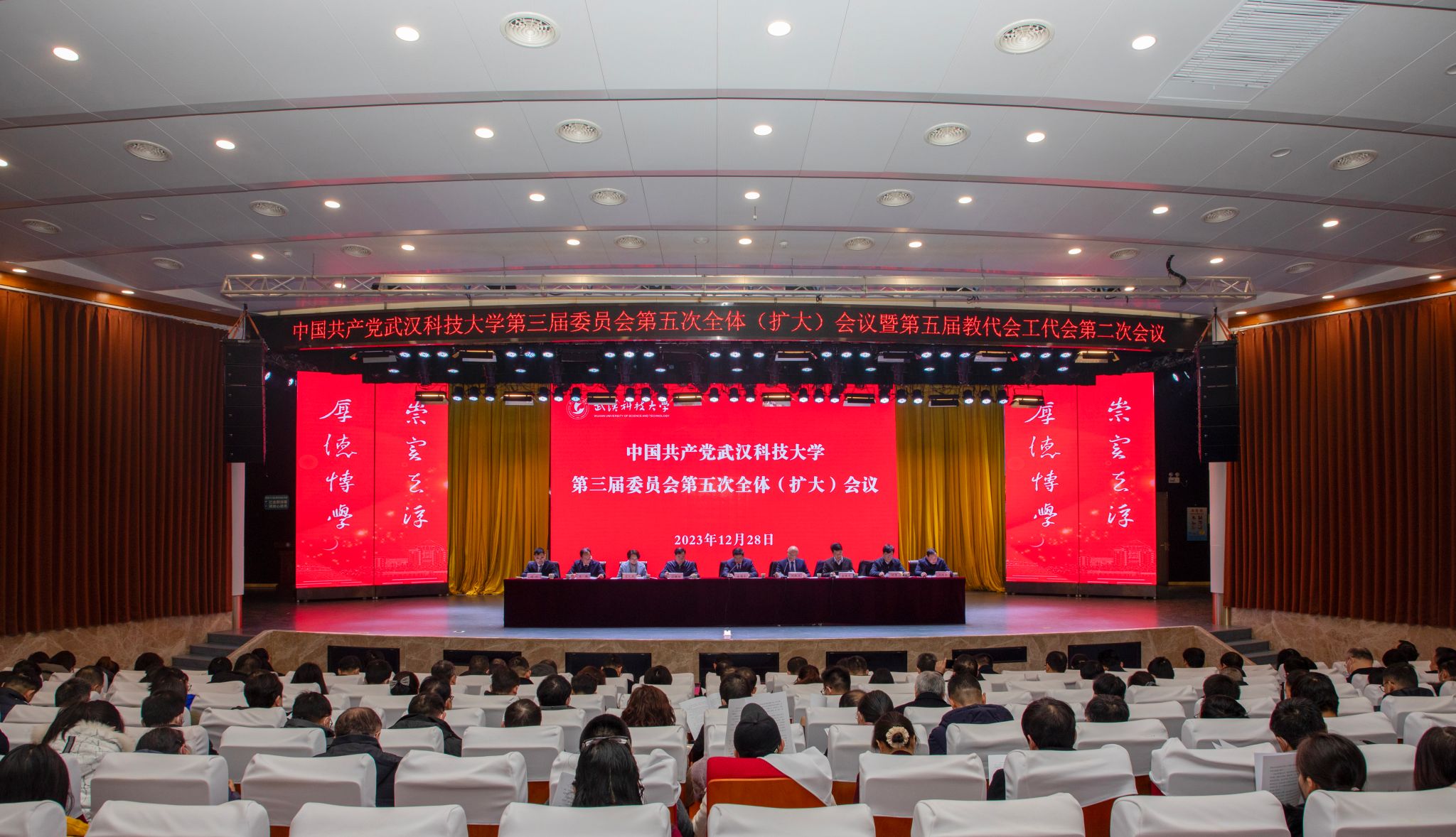 武科大网讯 12月28日上午,中国共产党365完美体育第三届委员会第五次全体(扩大)会议在青山校区碧园会堂召开。全会深入学习了省委十二届五次全会精神,听取和审议了党委常委会工作报告,审议并通过了《中共365完美体育委员会关于学习贯彻落实习近平文化思想 推进校园文化提能增效行动的实施意见》《365完美体育编制管理办法(试行)》《365完美体育“香涛学者特岗计划”实施办法(试行)》。