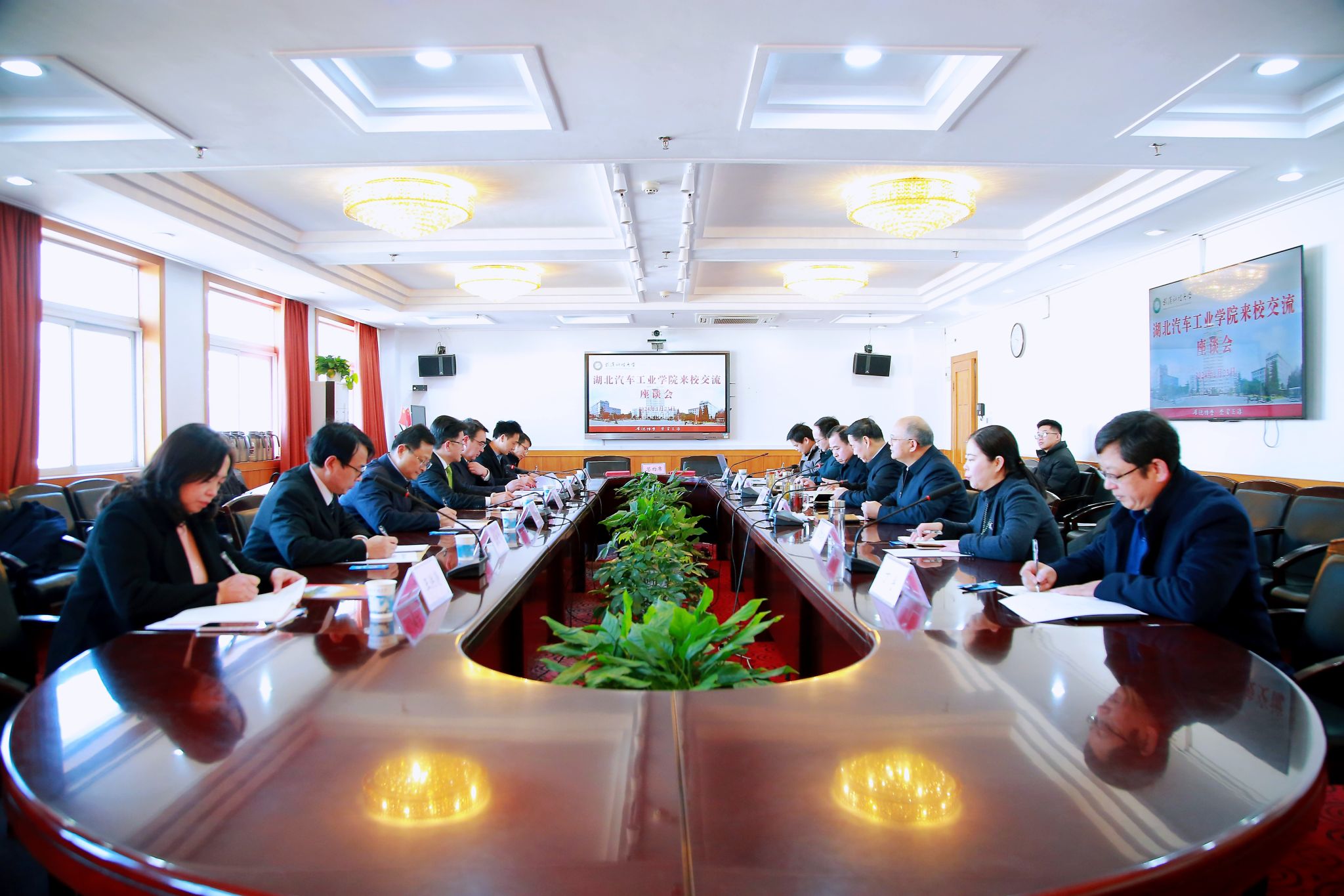 武科大网讯(记者李芳)1月23日,湖北汽车工业学院党委书记张文学、校长王晓一行来校调研交流,并与365完美签署了全面战略合作协议。校党委书记徐雁冰、校长倪红卫、党委副书记孙国胜出席座谈会。
