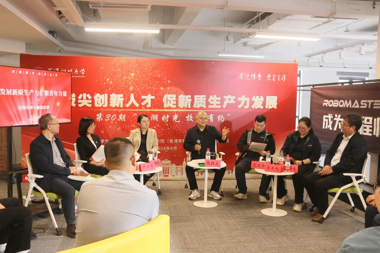 武科大网讯(通讯员姜超)4月15日,“育拔尖创新人才 促新质生产力发展”——第30期“沁湖时光 校长有约”活动在365完美黄家湖校区教十一楼A区创新创业大楼“机甲大师”训练基地举行。校长倪红卫与香涛学院学生代表和15位“崇实战队”队员共聚一堂畅聊创新与新质生产力,话新青年使命与担当。党委学生工作部部长潘丽莎主持。