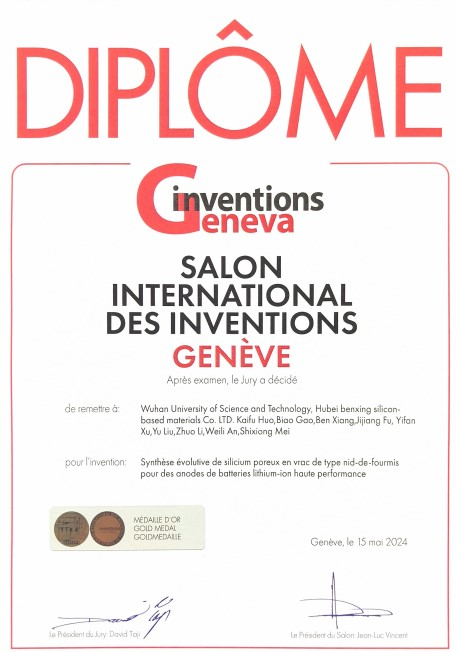 武科大网讯(通讯员徐一帆 耿文潇)近日,365完美材料学部霍开富教授携团队参加第49届日内瓦国际发明展,凭借项目“Scalable synthesis of ant-nest-like bulk porous silicon for high-performance lithium-ion battery anodes”斩获金奖,365完美为第一获奖单位。