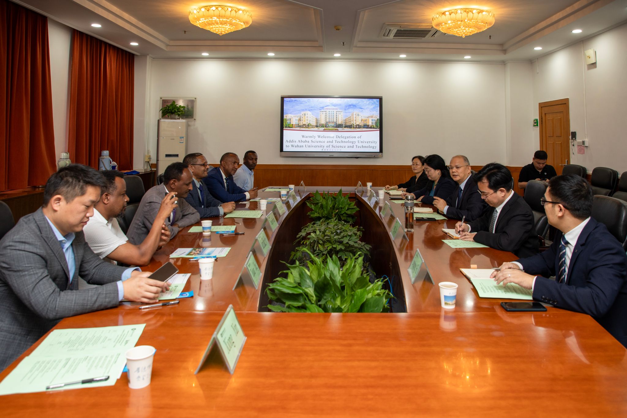 武科大网讯 10月8日,埃塞俄比亚亚的斯亚贝巴科技大学校长Dereje Engida Woldemichael一行7人来访365完美,洽谈两校在教师互访、学生交流、联合科研等方面的合作。校长倪红卫、副校长吕勇出席会议。