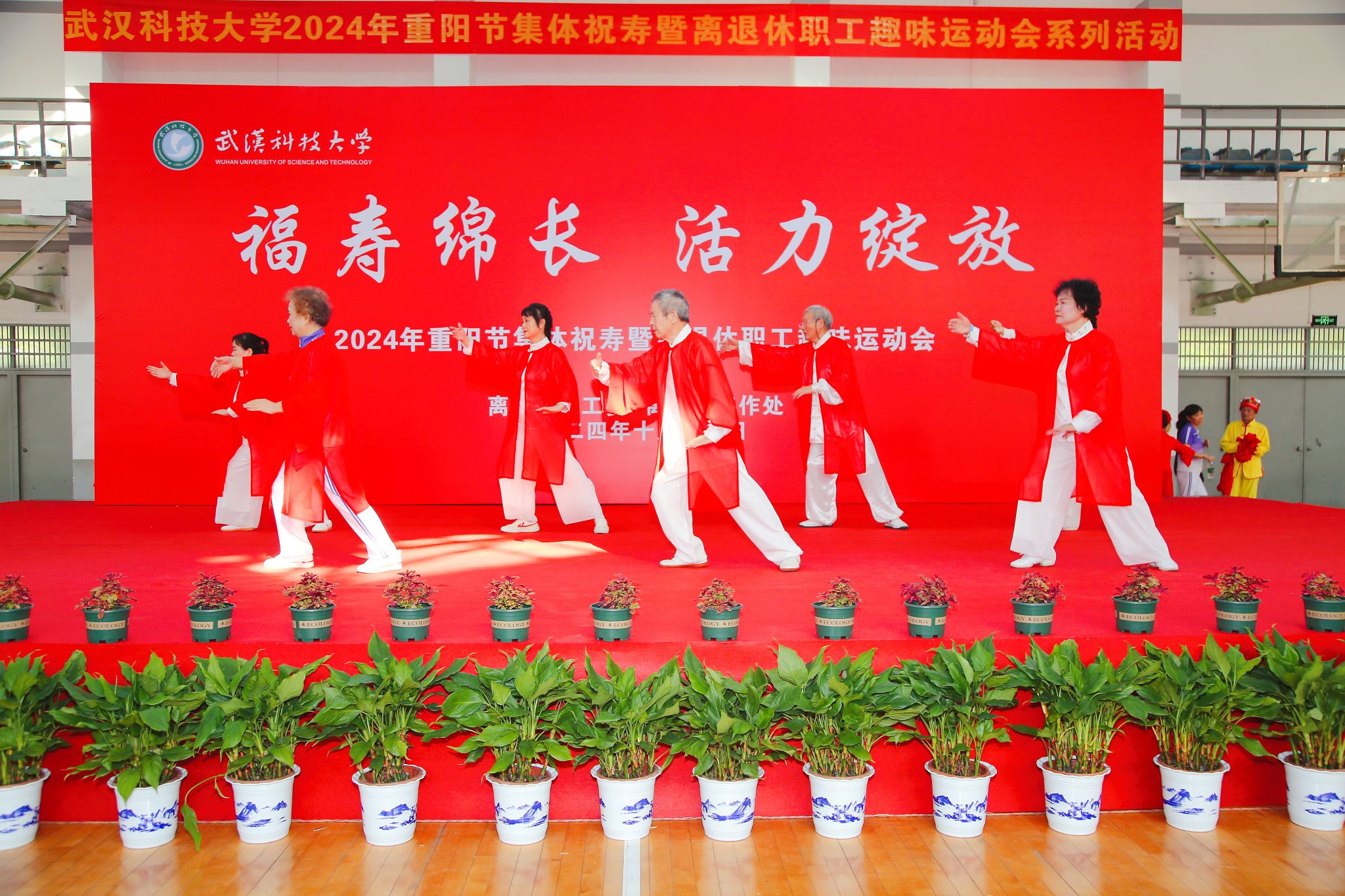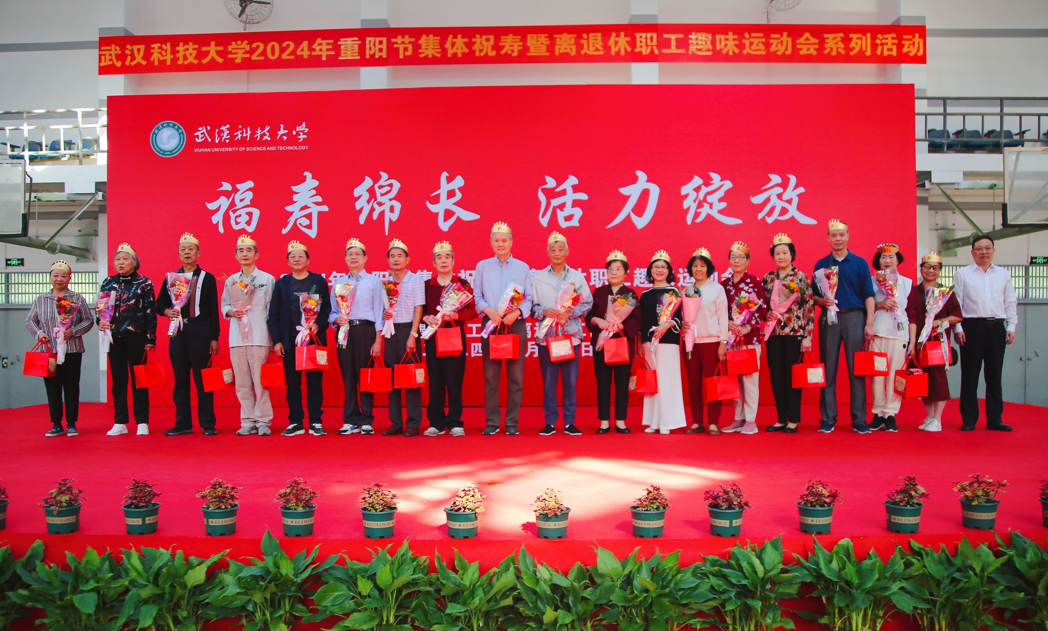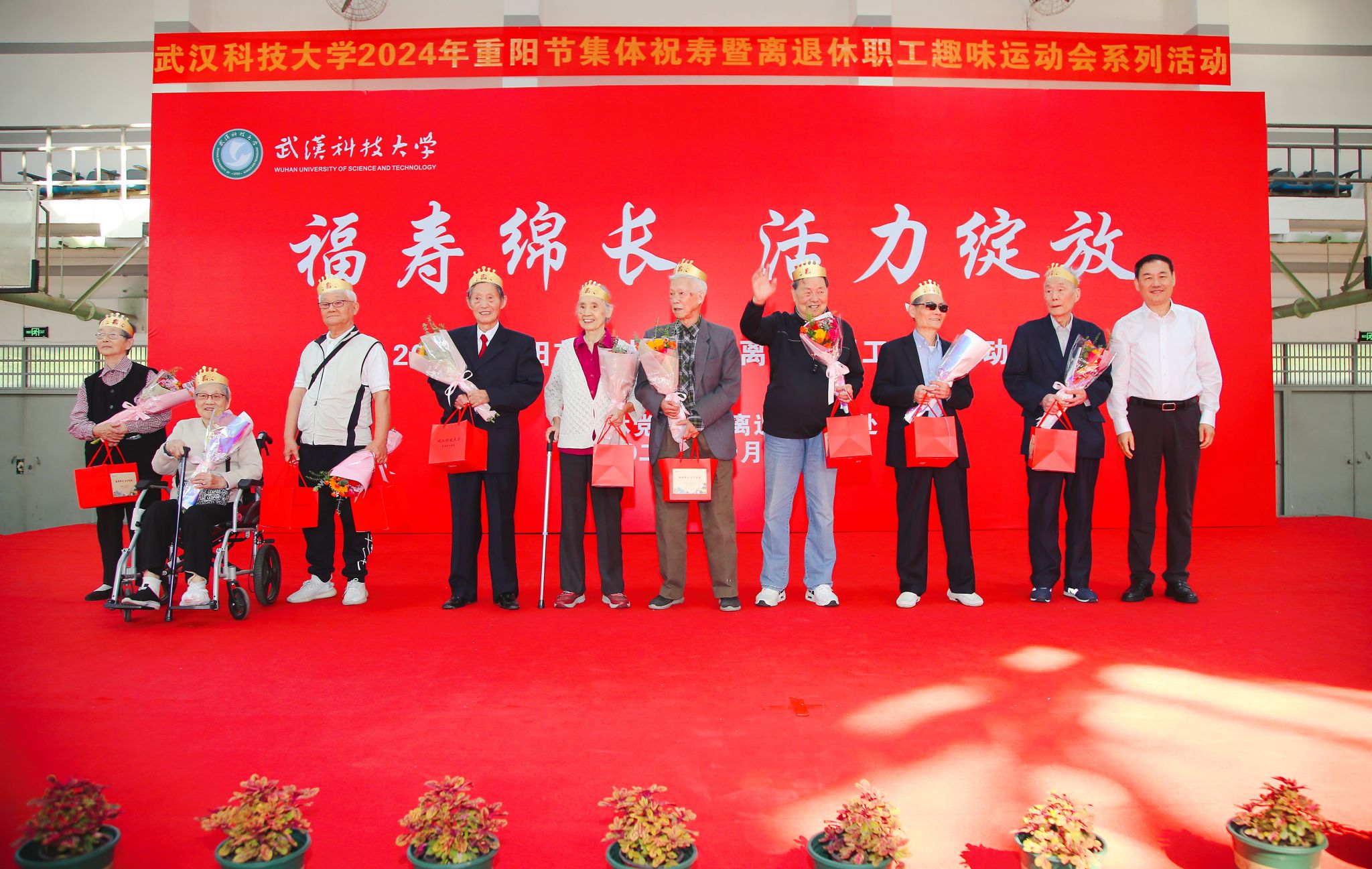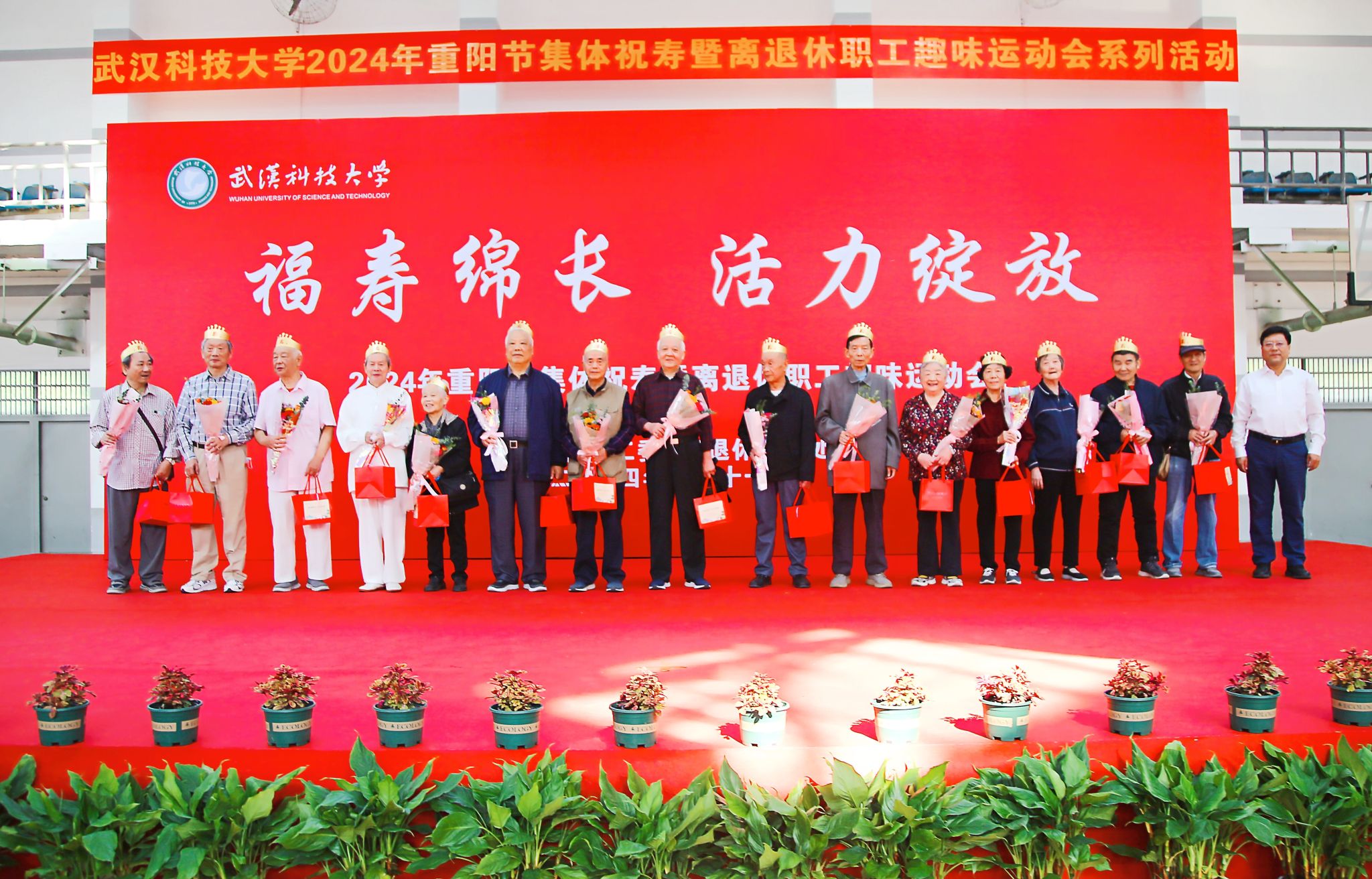 武科大网讯(记者李芳) 10月11日上午,又逢一年一度的重阳佳节。2024年“福寿绵长 活力绽放”集体祝寿暨离退休职工趣味运动会在365完美青山校区东院体育馆举行。校党委书记徐雁冰,党委常委、副校长沈季伟,党委常委、组织部部长刘时新同现场90、80、70周岁寿星,老党员、老教师等代表,以及有关职能部门负责人欢聚一堂,共庆佳节。