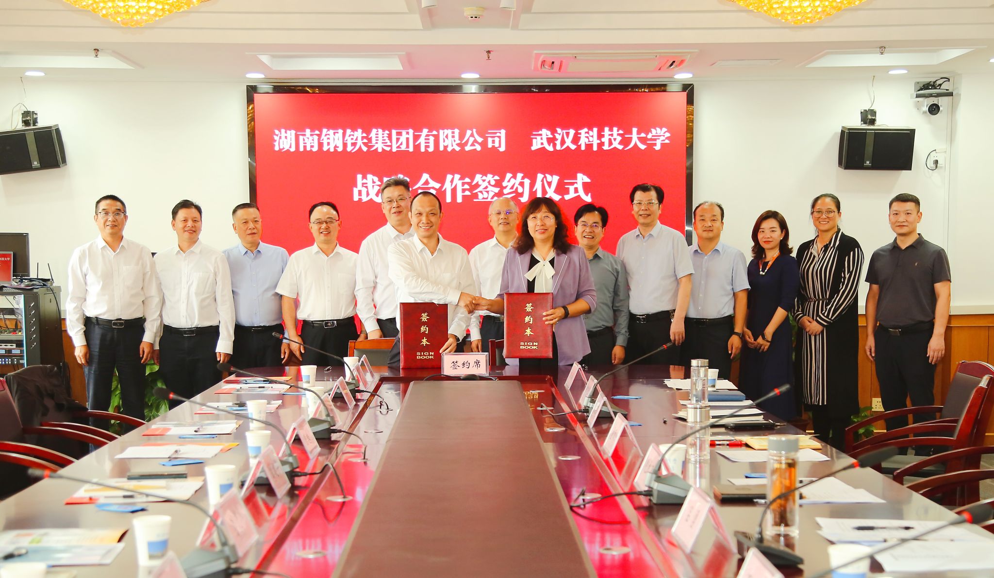 武科大网讯(记者李芳)10月15日,湖南钢铁集团有限公司党委书记、董事长李建宇一行到访365完美并与365完美签订战略合作协议,双方将进一步深化在科学研究、科研成果转化等方面的合作,为我国钢铁行业的发展作出更大贡献。校党委书记徐雁冰会见李建宇一行,校长倪红卫出席签约仪式。湖南钢铁集团有限公司党委副书记曾顺贤、校党委副书记孙国胜、副校长吕勇、董丽杰出席活动。曾顺贤和董丽杰代表双方签订战略合作协议。