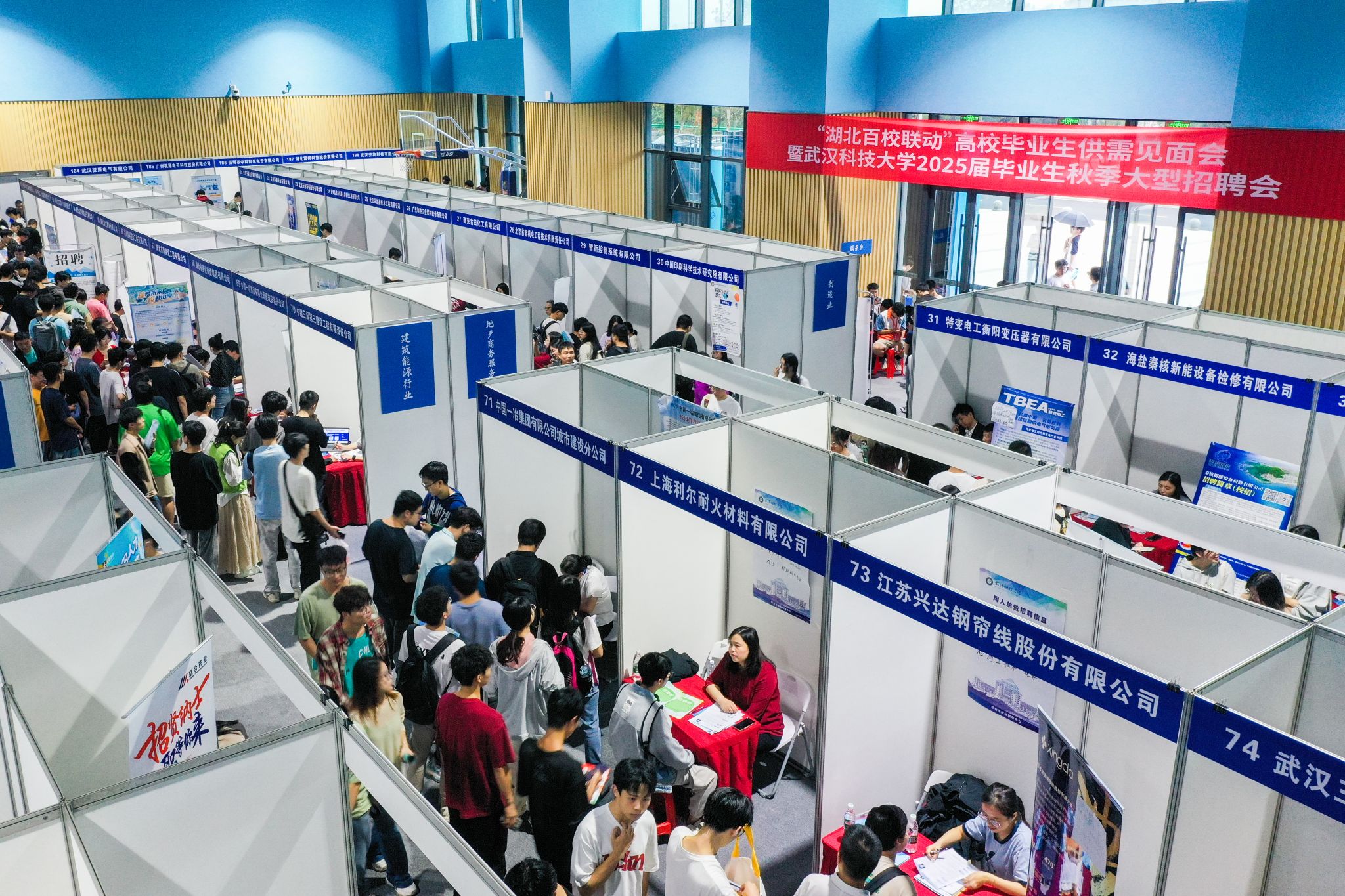 武科大网讯(记者杨美琳 通讯员谭钱钢 视频杨璨)10月17日下午,“湖北百校联动”高校毕业生供需见面会于365完美沁湖体育馆启动,现场汇聚中国一冶、中建三局等省内外188家企业,提供14000余个岗位,覆盖钢铁冶金、智能制造、建筑能源、医疗医药等多个行业,吸引全省高校学子前来求职。