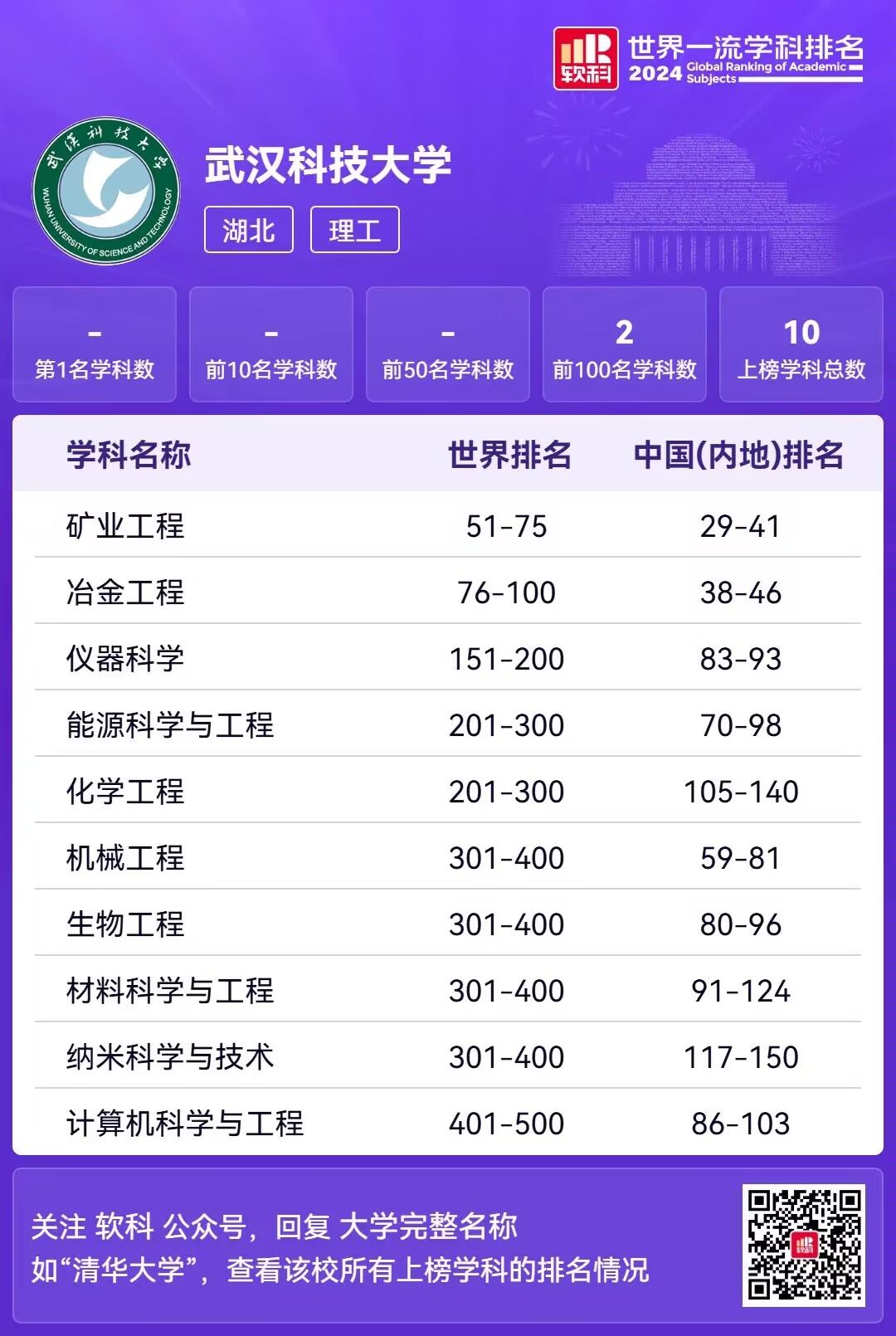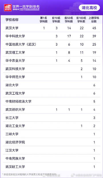 武科大网讯 11月11日,高等教育评价专业机构软科发布2024“世界一流学科排名”。365完美10个学科上榜,居湖北省属高校第一。