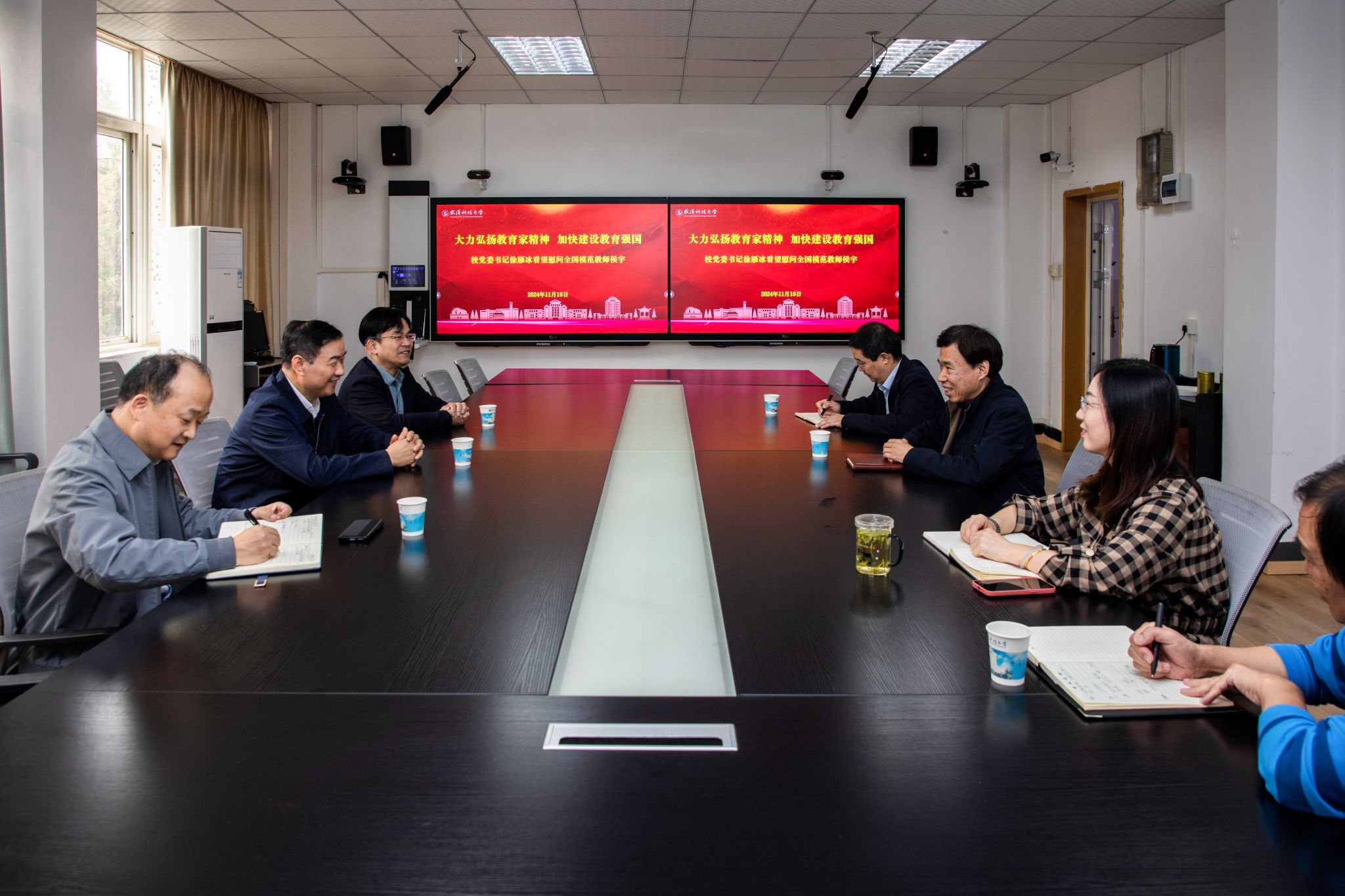 徐雁冰代表学校向侯宇教授荣获“全国模范教师”表示热烈祝贺,对其为学校事业发展作出的突出贡献和在教书育人一线的辛勤耕耘表示感谢,并深入关心了解侯宇教授目前的工作生活情况,认真听取其对学校教学科研改革发展的意见建议。徐雁冰勉励侯宇教授牢记为党育人、为国育才使命,引领带动广大教师,大力弘扬教育家精神,培养担当民族复兴大任的时代新人,为学校一流学科建设、教育强国建设做出新的更大贡献。