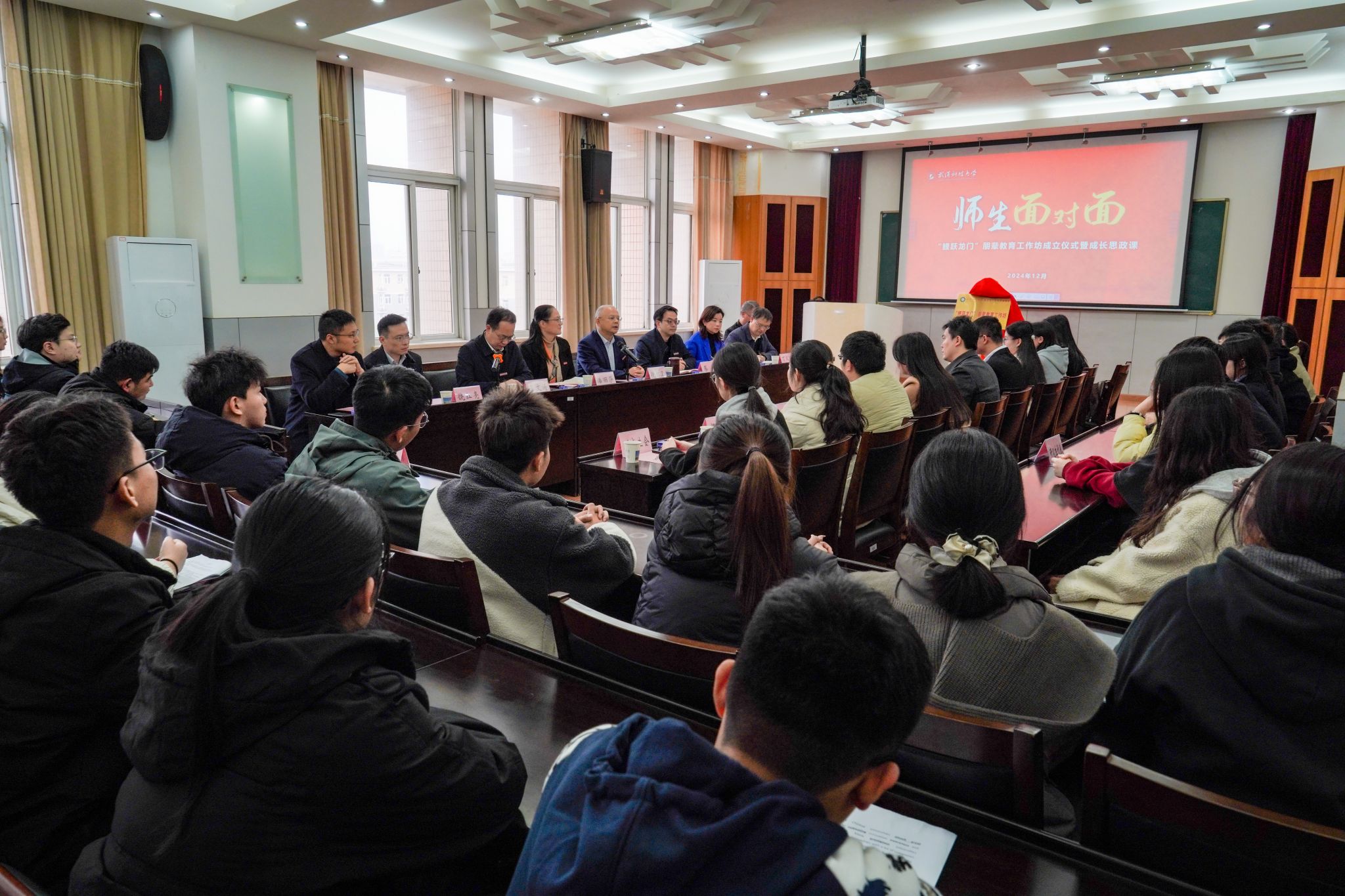 武科大网讯 12月5日,“师生面对面”系列活动之“鲤跃龙门”朋辈教育工作坊成立仪式暨成长思政课在理学院举行。校长倪红卫出席活动并给理学院50余名学生讲授成长思政课,共话朋辈教育,探讨人生理想。