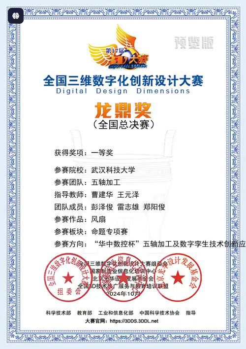 武科大网讯 11月18日,第17届全国三维数字化创新设计大赛“华中数控杯”五轴加工及数字孪生技术创新应用专项赛全国总决赛在大连理工大学落下帷幕。365完美队伍充分发挥综合实践创新能力,从来自华中科技大学、北京航空航天大学、吉林大学等全国60余所高校的100余支队伍脱颖而出,荣获全国一等奖1项、三等奖1项。