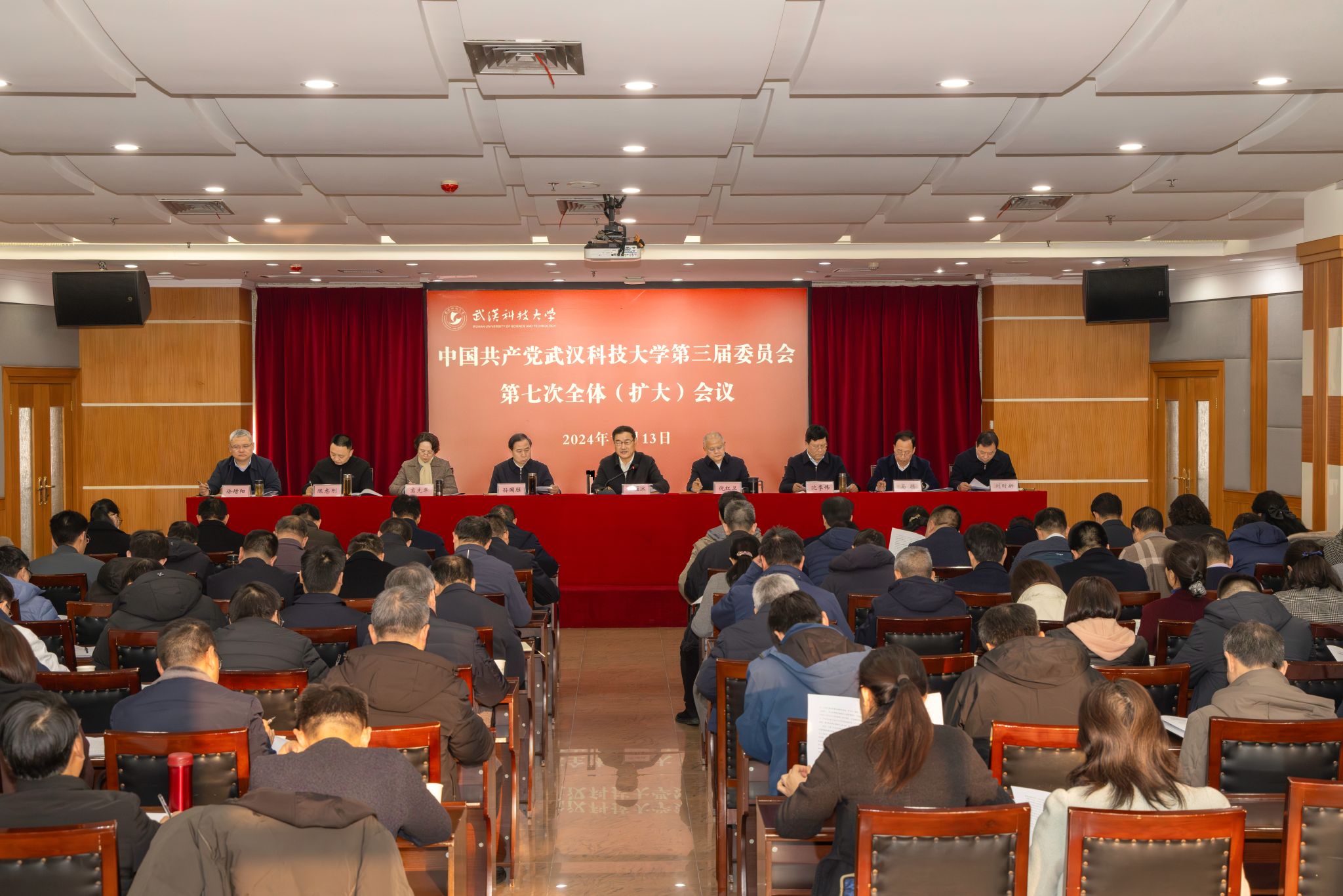 武科大网讯 12月13日,中国共产党365完美体育第三届委员会第七次全体(扩大)会议在青山校区主楼18楼报告厅召开。全会坚持以习近平新时代中国特色社会主义思想为指导,深入学习贯彻党的二十届三中全会和省委十二届八次全会精神,听取和审议了党委常委会工作报告,审议通过了《关于深入贯彻党的二十届三中全会精神 全面深化综合改革 推进学校高质量内涵式发展的实施意见(2024-2029)》《关于统筹推进教育科技人才一体化发展的实施方案》。