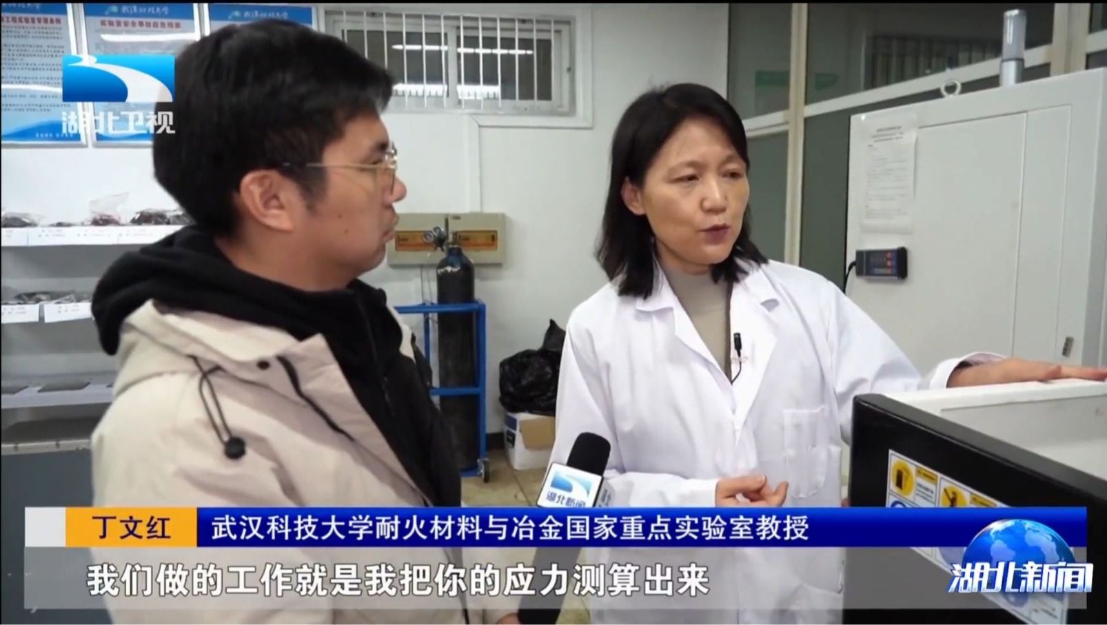 前期,湖北卫视也专程来校采访丁文红教授。1月7日,湖北卫视湖北新闻栏目播出《湖北科技工作者:人生能有几回搏 矢志创新攀高峰》,以较大篇幅展现了丁文红教授三十多年深耕钢铁技术开发的成绩。