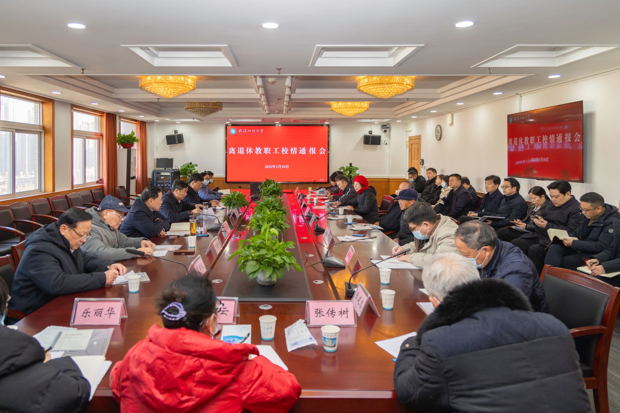 武科大网讯(记者陈孖川) 1月10日上午,学校在青山校区召开离退休教职工校情通报会。校党委书记徐雁冰出席会议并讲话,校党委副书记沈季伟通报学校2024年工作。党委常委刘时新主持会议。