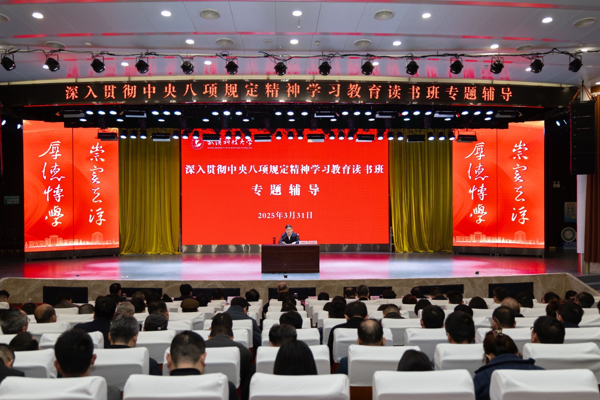 武科大网讯 3月31日,党委书记徐雁冰为学校深入贯彻中央八项规定精神学习教育读书班作专题辅导报告。
