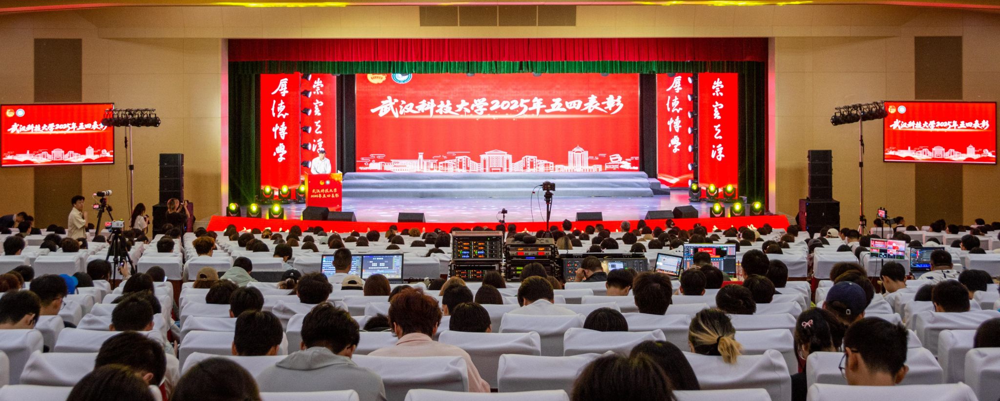 武科大网讯(见习记者张汇 记者李周阳)4月26日晚,学校在黄家湖校区沁湖礼堂举行2025年五四表彰大会暨“五月的花海”合唱比赛。千余名师生齐聚一堂,用歌声纪念五四运动106周年,展现爱党爱国爱社会主义的坚强决心,迎接五四青年节的到来。