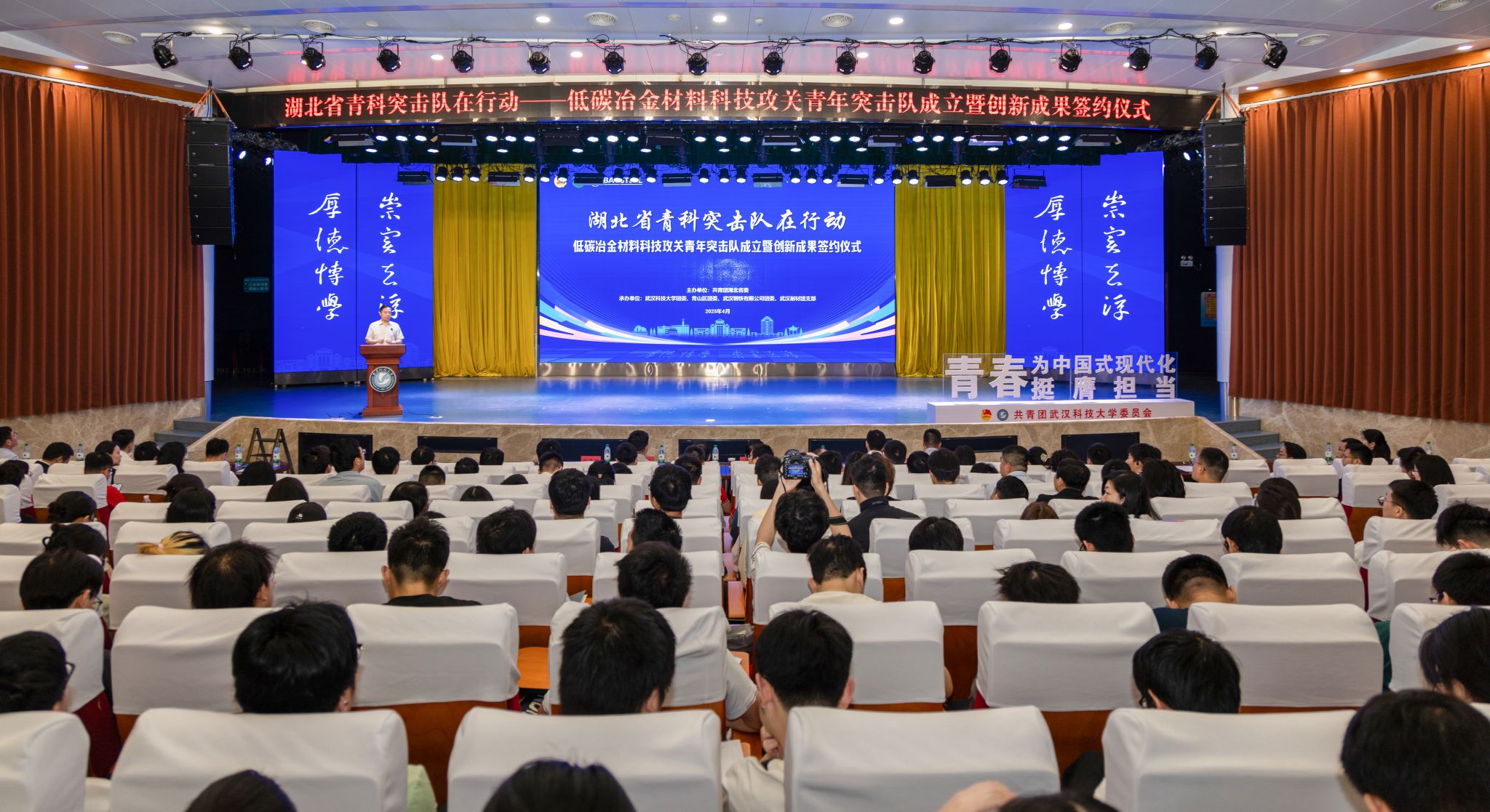 武科大网讯 4月27日下午,学校在青山校区碧园会堂举办湖北省青科突击队在行动——低碳冶金材料科技攻关青年突击队成立暨创新成果签约仪式。共青团湖北省委书记刘治田,武汉市青山区委副书记、区委政法委书记彭勇军,团武汉市委副书记吴海东,宝钢股份党委常委、副总经理,武钢有限公司党委书记、执行董事彭俊,中钢洛耐总经理、武汉耐材公司党委书记、执行董事、总裁左锐,校党委书记徐雁冰出席活动。校党委副书记孙国胜主持。