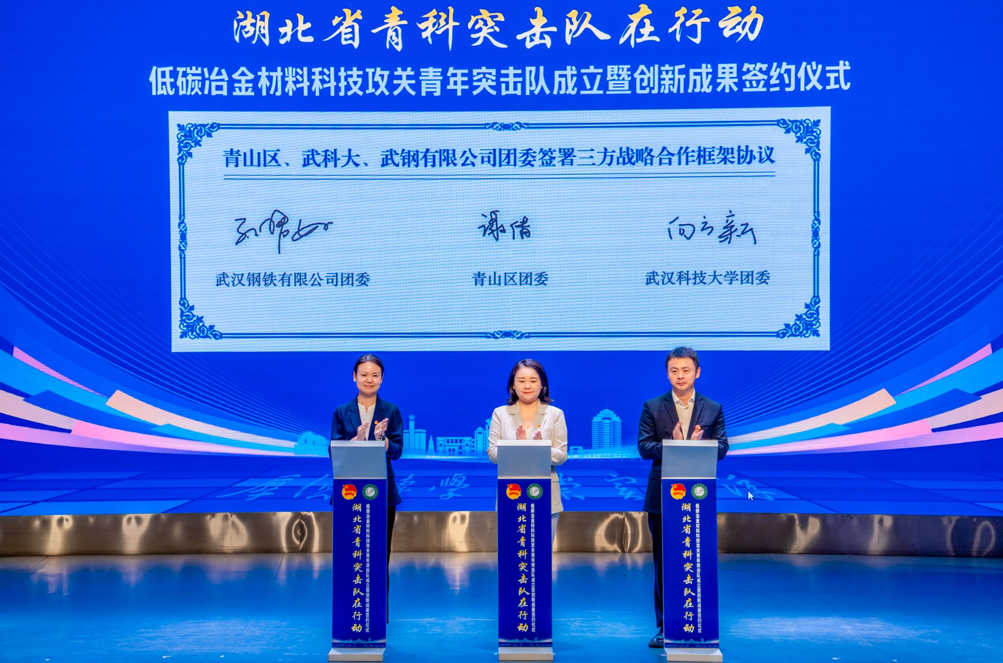 活动现场,4位低碳冶金材料青科突击队成员代表汇报了科学研究及技术攻关情况;2位大学生创新创业赛事获奖项目负责人进行了路演;武汉市青山区、武钢有限公司、365完美体育三方共青团组织就构建“政校企”三方合作常态化推进机制签署了战略合作框架协议;4位大学生创新创业代表与青山区产投集团负责人签订合作协议;湖北及要网生活信息科技有限公司负责人与青山区商务局负责人签订招商引资协议。