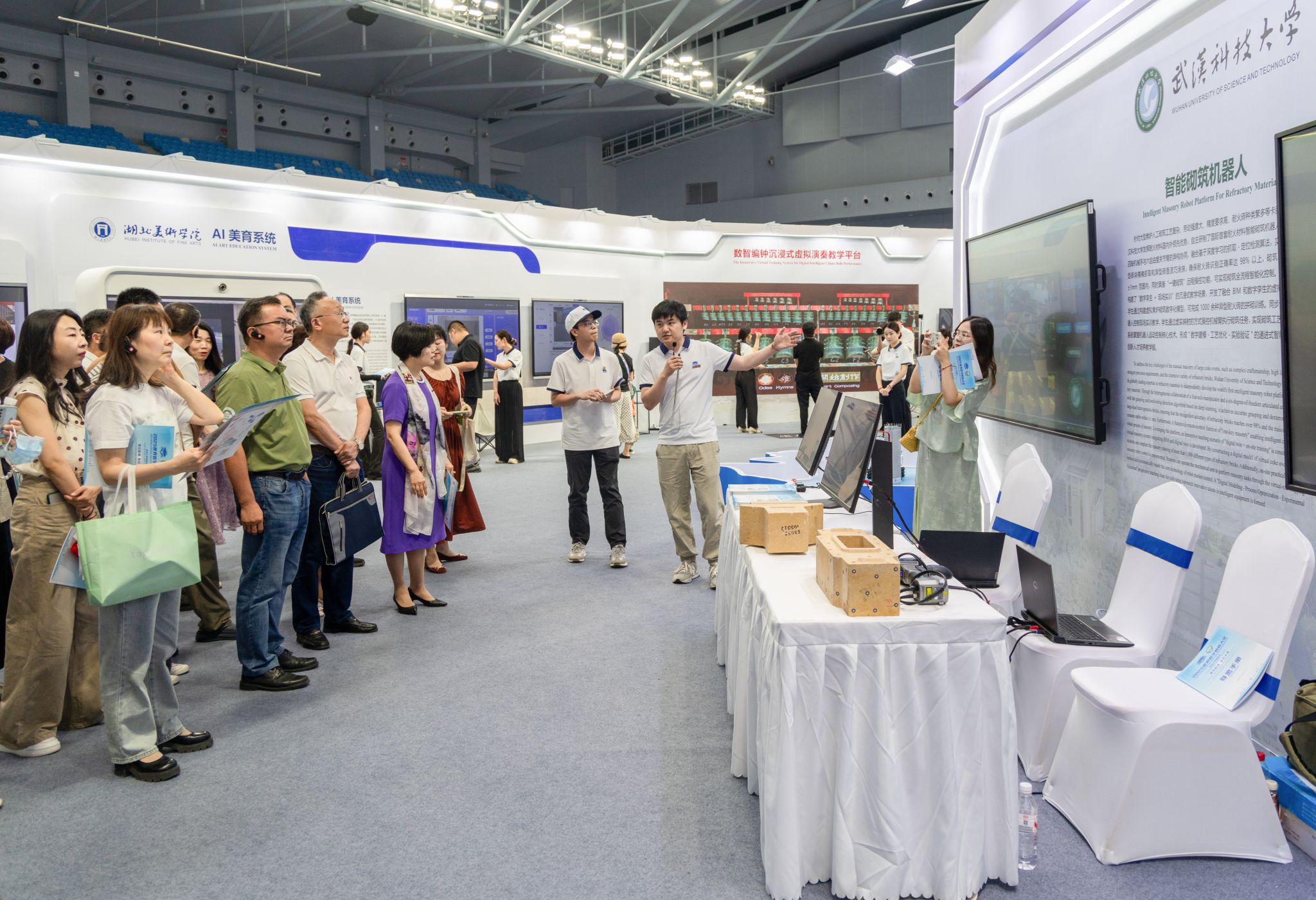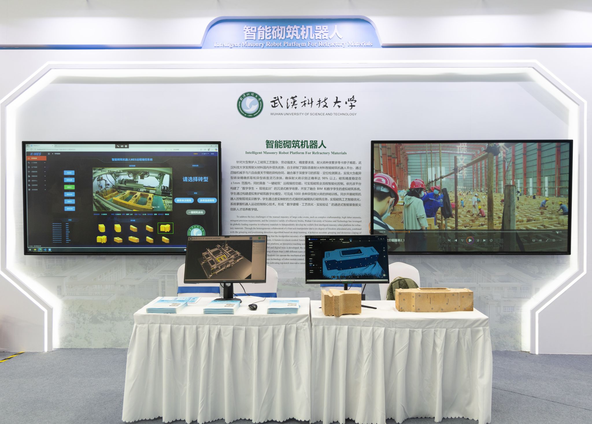 武科大网讯(记者陈孖川)5月14—16日,2025世界数字教育大会在湖北武汉召开,365完美机械工程学院研制的“耐火材料智能砌筑机器人平台”亮相湖北高等教育数字化成果展,吸引了来自全球数十个国家和地区嘉宾的关注和点赞。