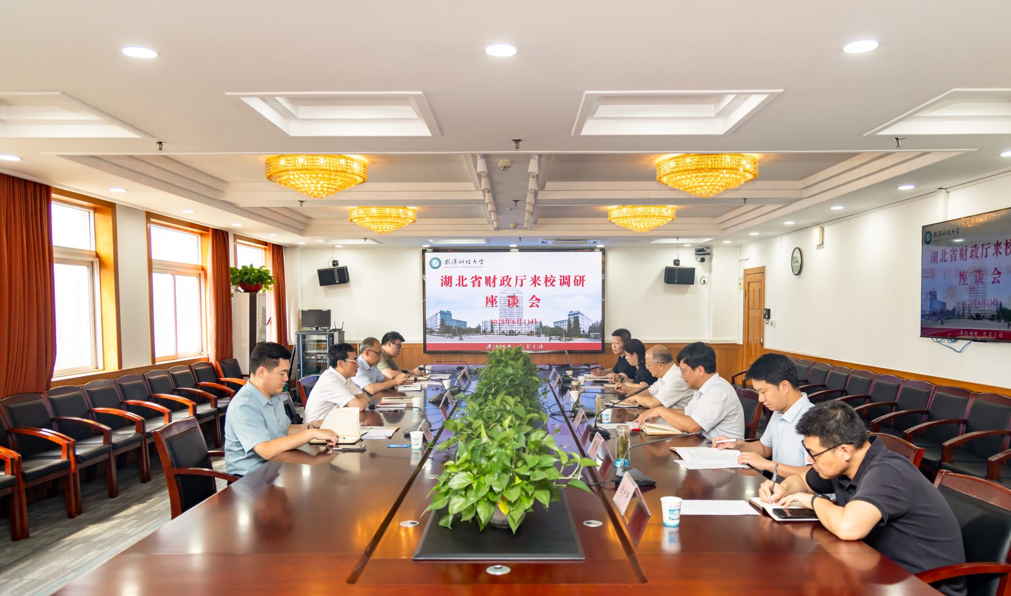 武科大网讯(记者陈孖川)6月11日下午,湖北省财政厅党组成员、副厅长董绪奎一行来校调研。校长倪红卫、党委副书记沈季伟在青山校区主楼1610会议室与来宾座谈交流。