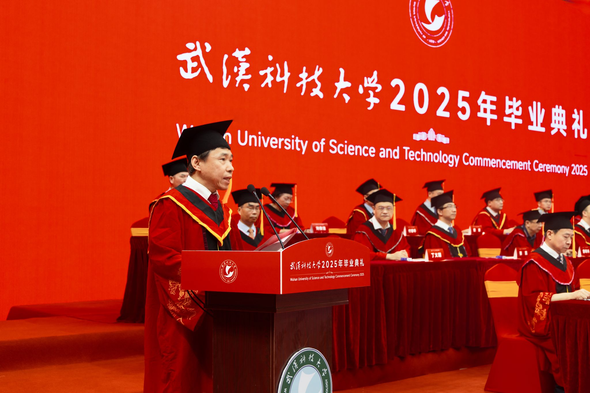 校长倪红卫以“与时偕行 力新致远”为题,为毕业生送上临别寄语。“‘力新’源自沁湖文化‘向上向美、力行力新’,意为‘力求创新、革故鼎新’,根植于武科大“钢铁品质”的沃土。”倪红卫说,从张之洞创办工艺学堂开启实业教育先河,到新中国成立后一代代武科大学人为新中国钢铁工业发展壮大作出巨大贡献,再到近年19项国家科技奖、耐火材料学科世界“单项冠军”的成就,武科大始终以创新引领发展。
