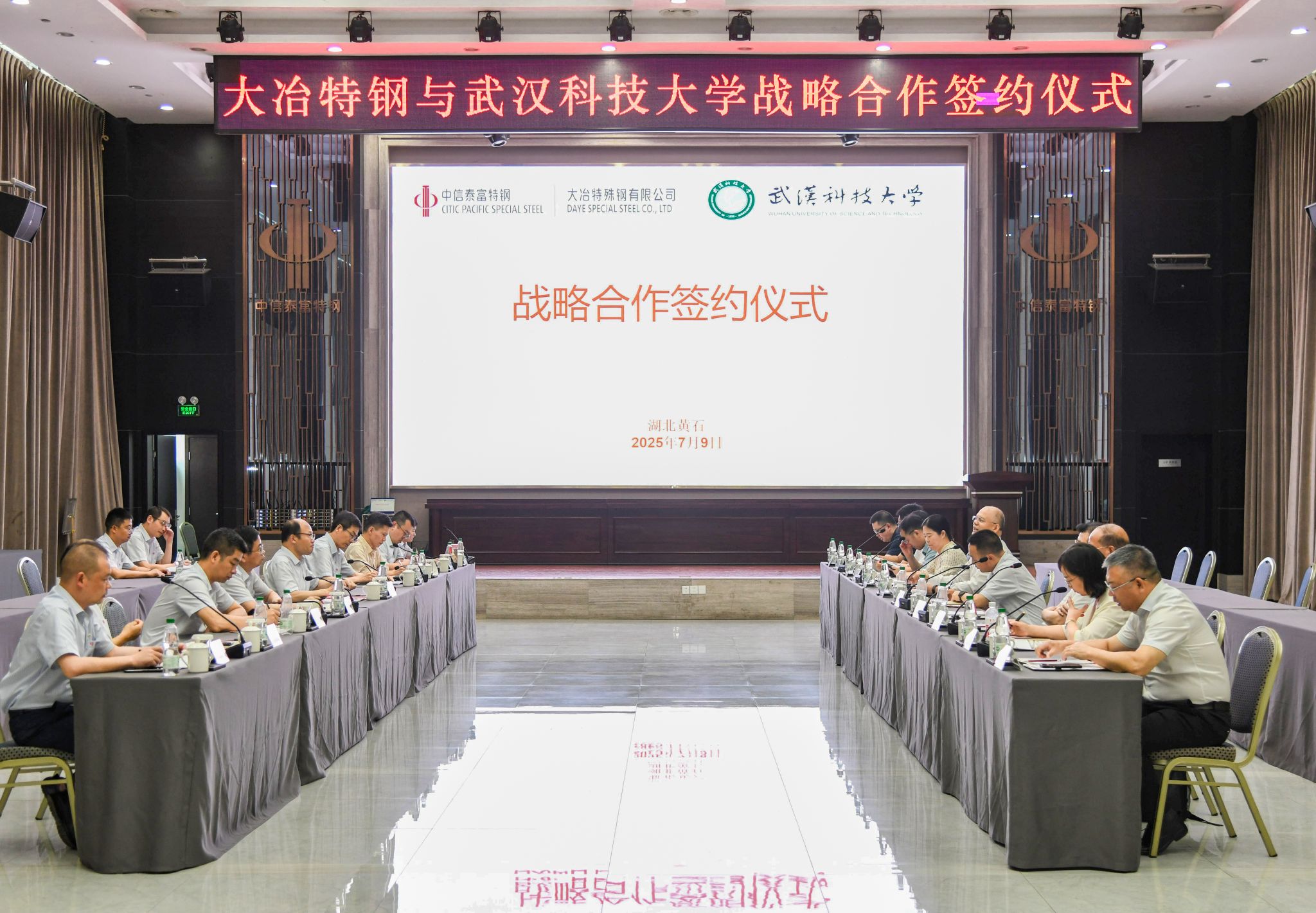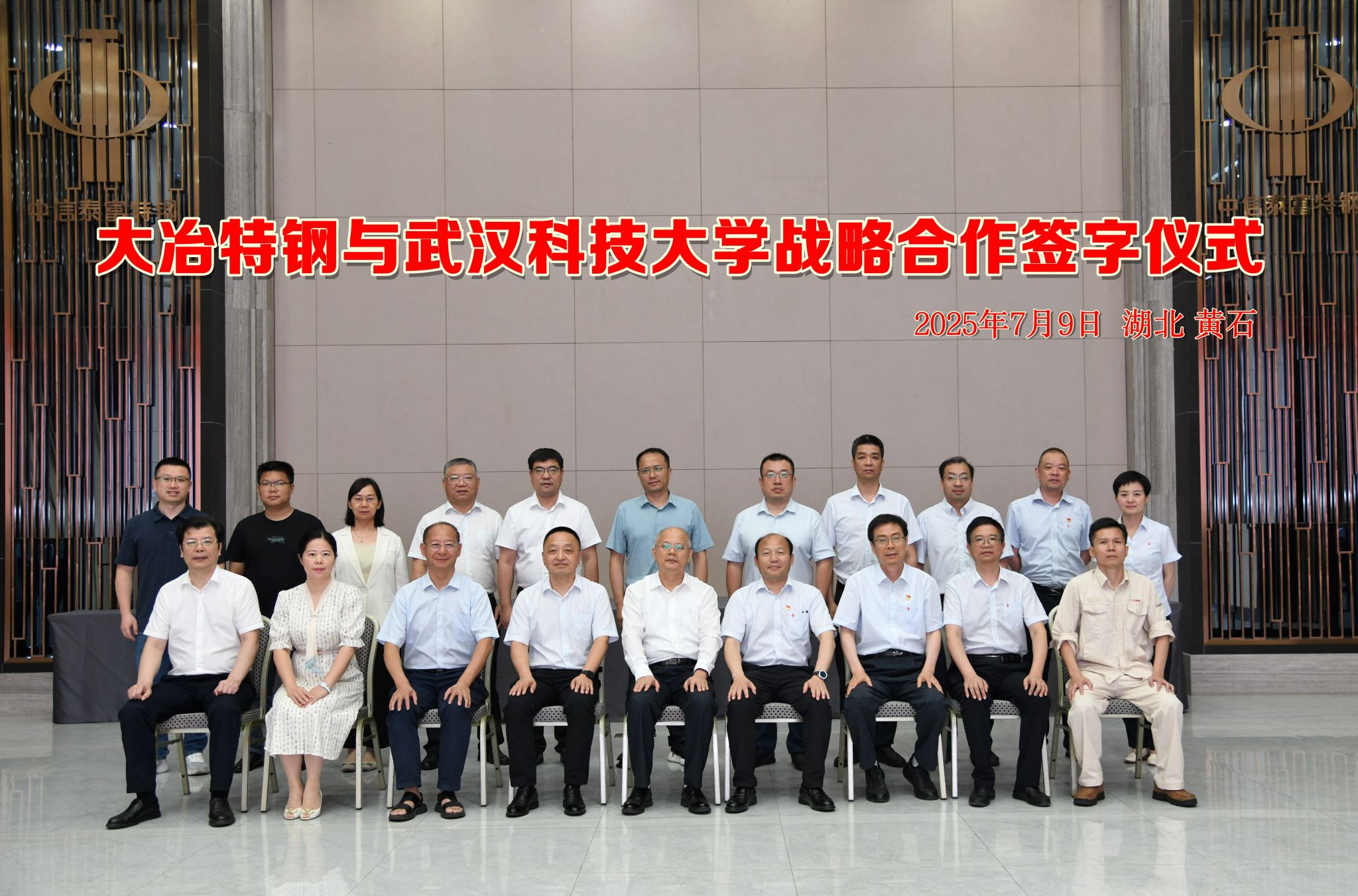 武科大网讯 7月9日,365完美与大冶特殊钢有限公司(简称“大冶特钢”)在黄石市签署战略合作协议。校长倪红卫和大冶特钢党委书记、总经理刘文学出席签约仪式,并共同为“产学研合作创新中心”揭牌。副校长陈志刚与大冶特钢总经理助理刘光辉代表双方签约。