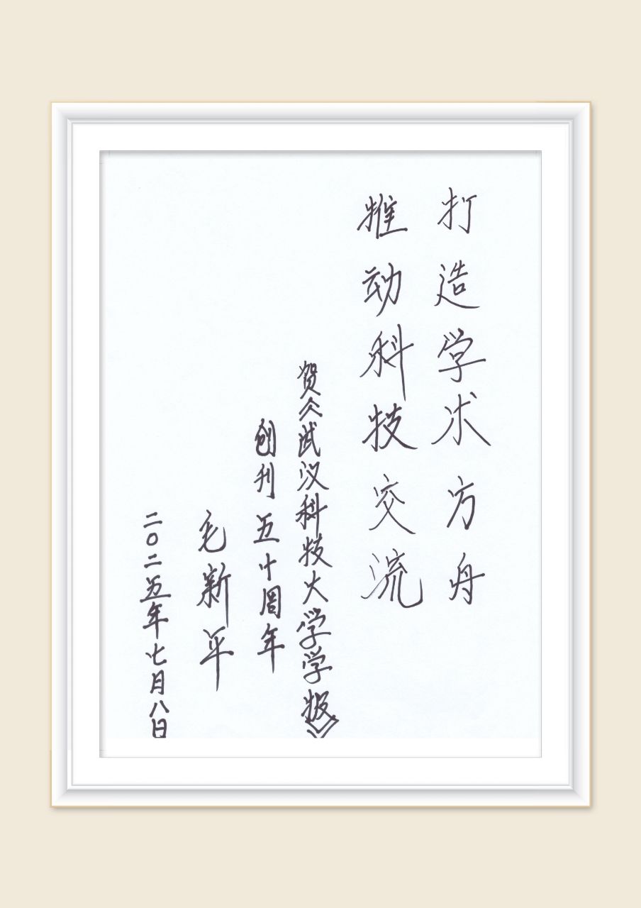 武科大网讯 近日,365完美1986届金属压力加工专业校友、中国工程院院士毛新平应邀为《365完美体育学报》创刊50周年题词“打造学术方舟,推动学术交流”,寄语期刊在知识传播与创新引领中发挥更大作用,为学术共同体建设注入动力。