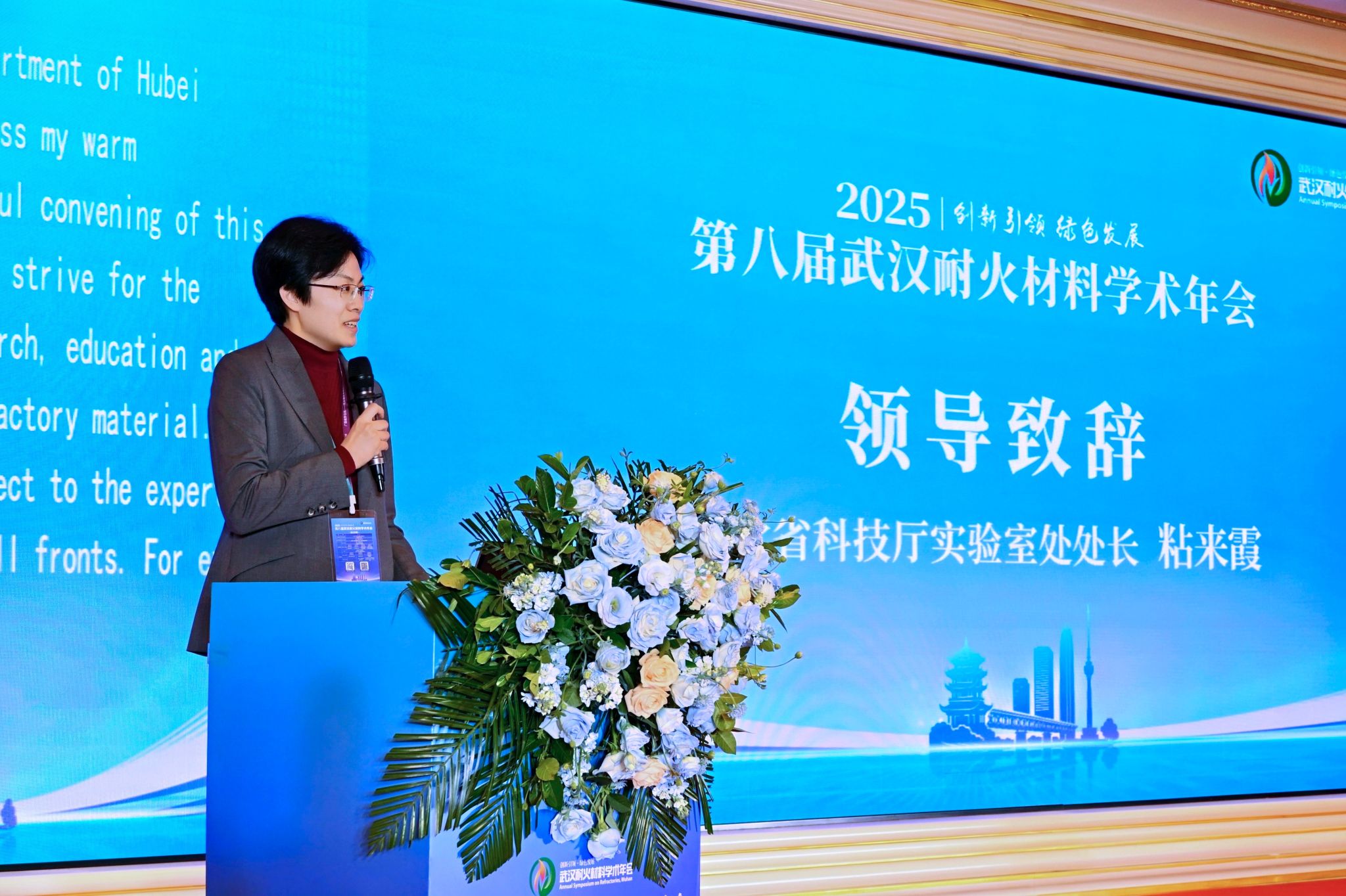 湖北省科技厅实验处处长粘来霞在致辞中表示,耐火材料是高温工业与国防军工等国家命脉产业的关键基础,希望会议凝聚智慧,推动产学研用协同,助力实现高温工业绿色可持续发展。
