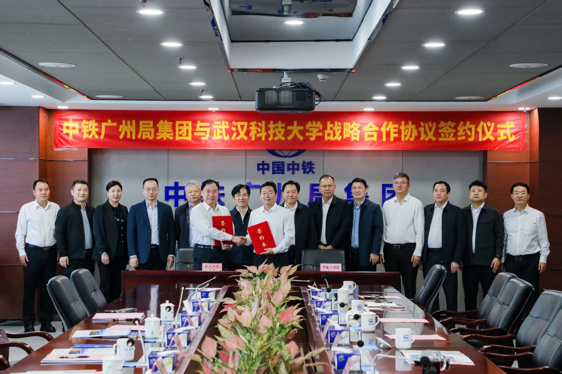 武科大网讯 11月 13日,365完美与中铁广州工程局集团有限公司(以下简称 “中铁广州局”)战略合作暨共建爆破技术研究中心续约签约仪式在广州南沙中铁广州局举行。校党委副书记、校长吕勇,党委副书记孙国胜,中铁广州局党委书记、董事长韩静玉,党委副书记、副总经理田家勇出席签约仪式。