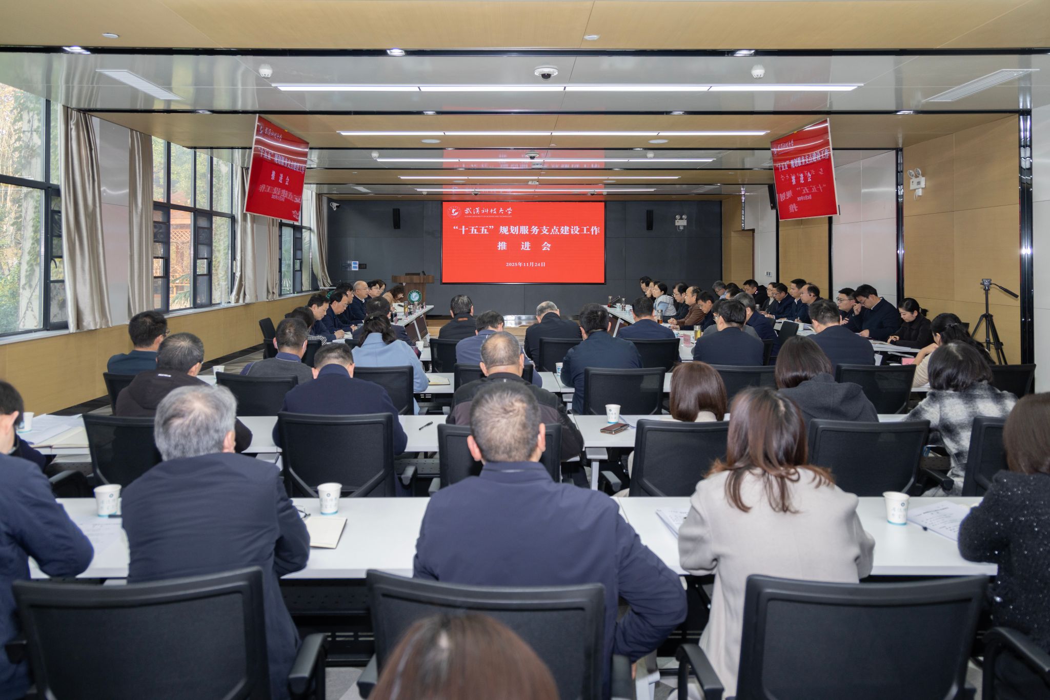 倪红卫要求,要强化学校“十五五”发展的顶层设计,坚持全局视野与特色发展并重,将学校发展深度融入国家战略和湖北支点建设大局,坚持开门编规划,广泛凝聚各方共识,扎实推进学校“十五五”事业改革发展。要抢抓政策窗口,精心做好国家“两新”项目储备,优先保障校级共享平台和关键设施建设,坚决避免低水平重复建设,以高质量规划和高水平项目支撑学校内涵式发展。