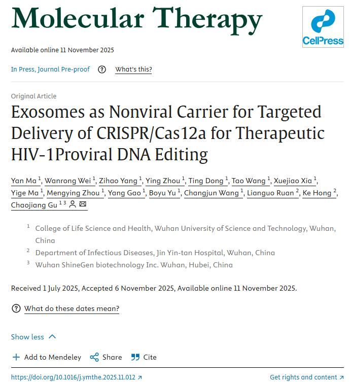 Molecular Therapy为全球三大科学期刊之一Cell的子刊,是医学、生物工程等领域的TOP期刊,主要致力于促进遗传学、医学和生物技术科学的发展,被称为“基因编辑的诺亚方舟”和“转化医学的黄金赛道”。