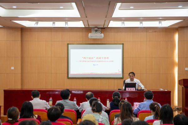 湖北省人大常委会教科文卫委员会副主任喻立平围绕学习贯彻习近平新时代中国特色社会主义思想作了题为《“两个结合”的若干思考》的辅导报告。喻立平从“两个结合”与党的百年历程、“两个结合”与中华文明之根、“两个结合”与中华文化基因、“两个结合”与传统修养功夫以及“两个结合”与马院建设方向等五个方面详细阐释了马克思主义理论和中华优秀传统文化相结合的重大意义。喻立平强调,搞清楚“两个结合”的若干问题,对于我们高校马院的建设方向提供了重要参考,我们要牢记习近平总书记的教导:“只有坚持从历史走向未来,从延续民族文化血脉中开拓前进,我们才能做好今天的事业。”