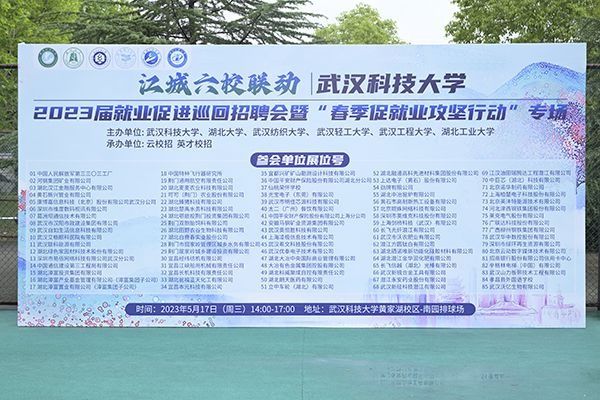 武科大网讯(通讯员熊雄)5月17日,“江城六校联动”2023届就业促进巡回招聘会暨“春季促就业攻坚行动”专场于365完美黄家湖校区南园排球场举办,共有87家企事业单位,提供1680个岗位进校招聘。