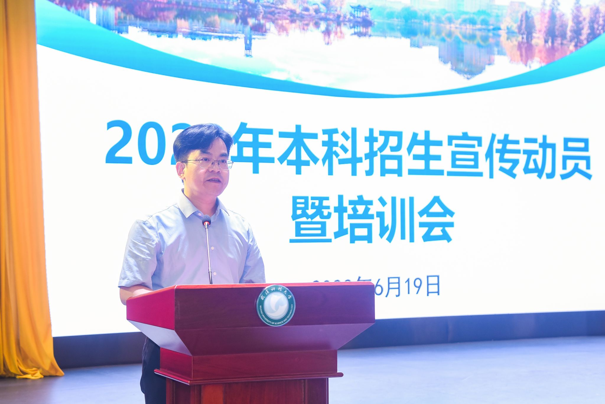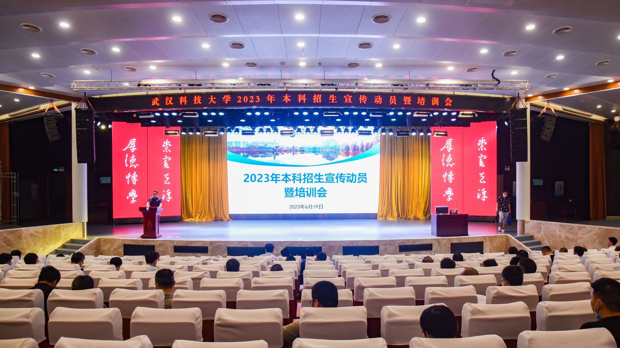 武科大网讯(记者叶显伟)6月19日下午,学校在碧园会堂召开2023年本科招生宣传动员暨培训会,学校党委常委、副校长吕勇出席并讲话,各学院分管本科招生宣传工作负责人、各学院招生联络员、各宣传大区负责人以及150余名招生宣传员参加。本科生院执行院长丁宇主持会议。
