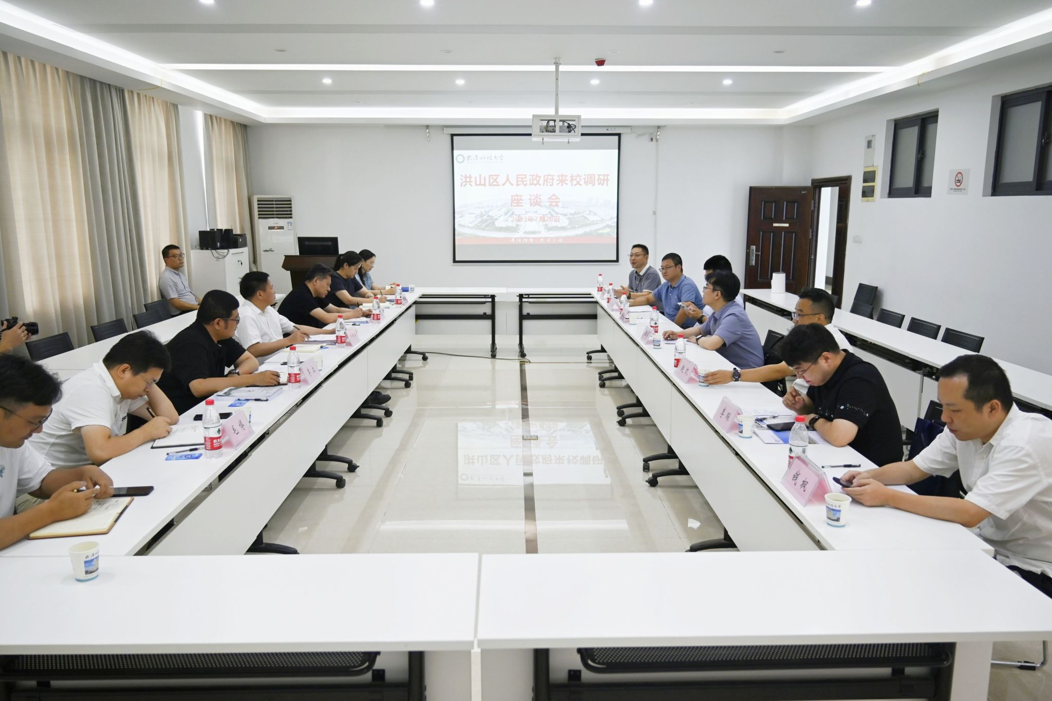 洪山区政府办主任熊贤斌、科经局负责人李立、大学之城办公室副主任蔡菁参加座谈调研。