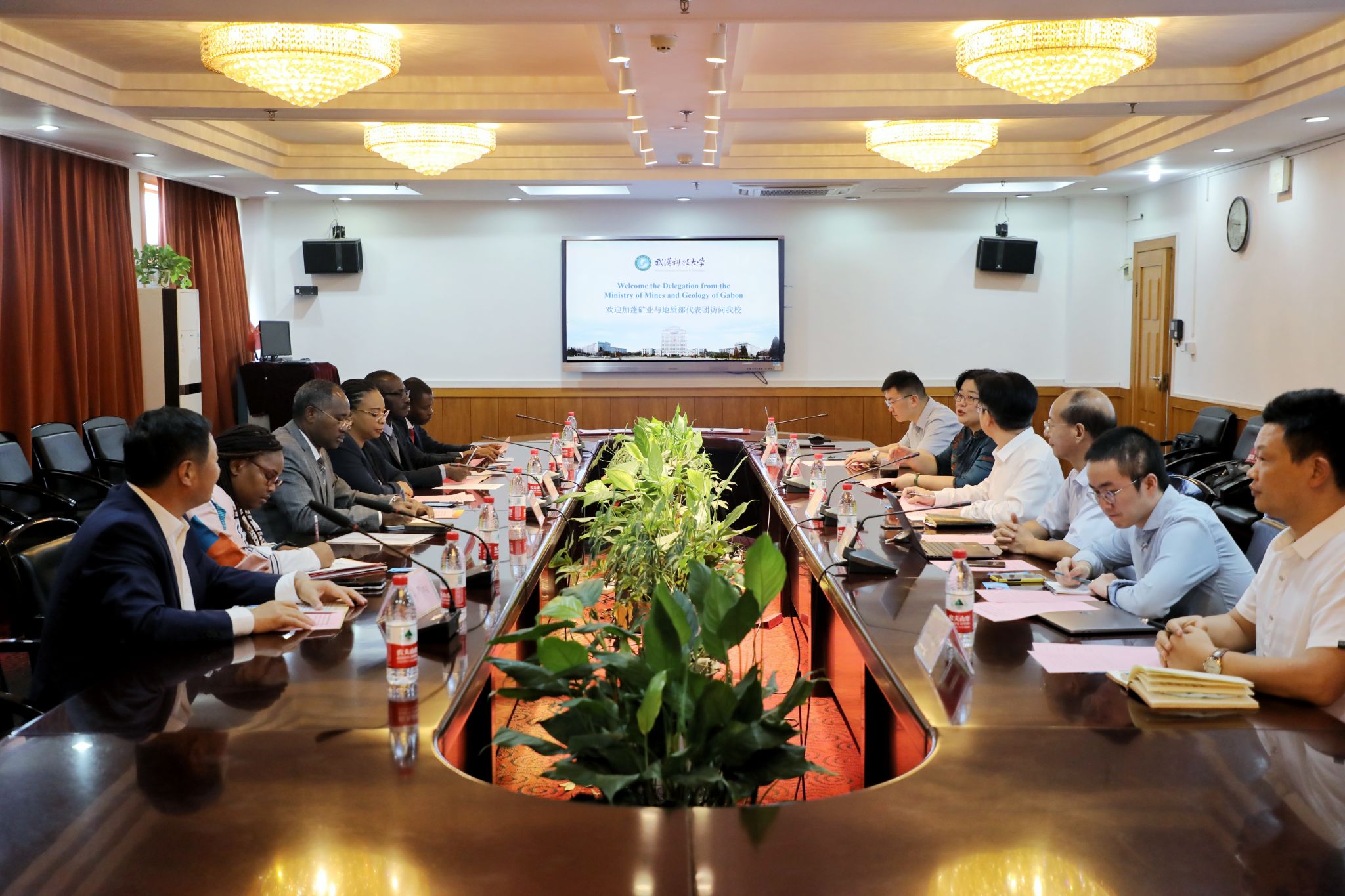 加蓬矿业与地质部外交顾问、法律顾问、技术顾问以及翻译,中宁矿业(加蓬)有限公司董事长林平、学校相关部门负责人参加会议。