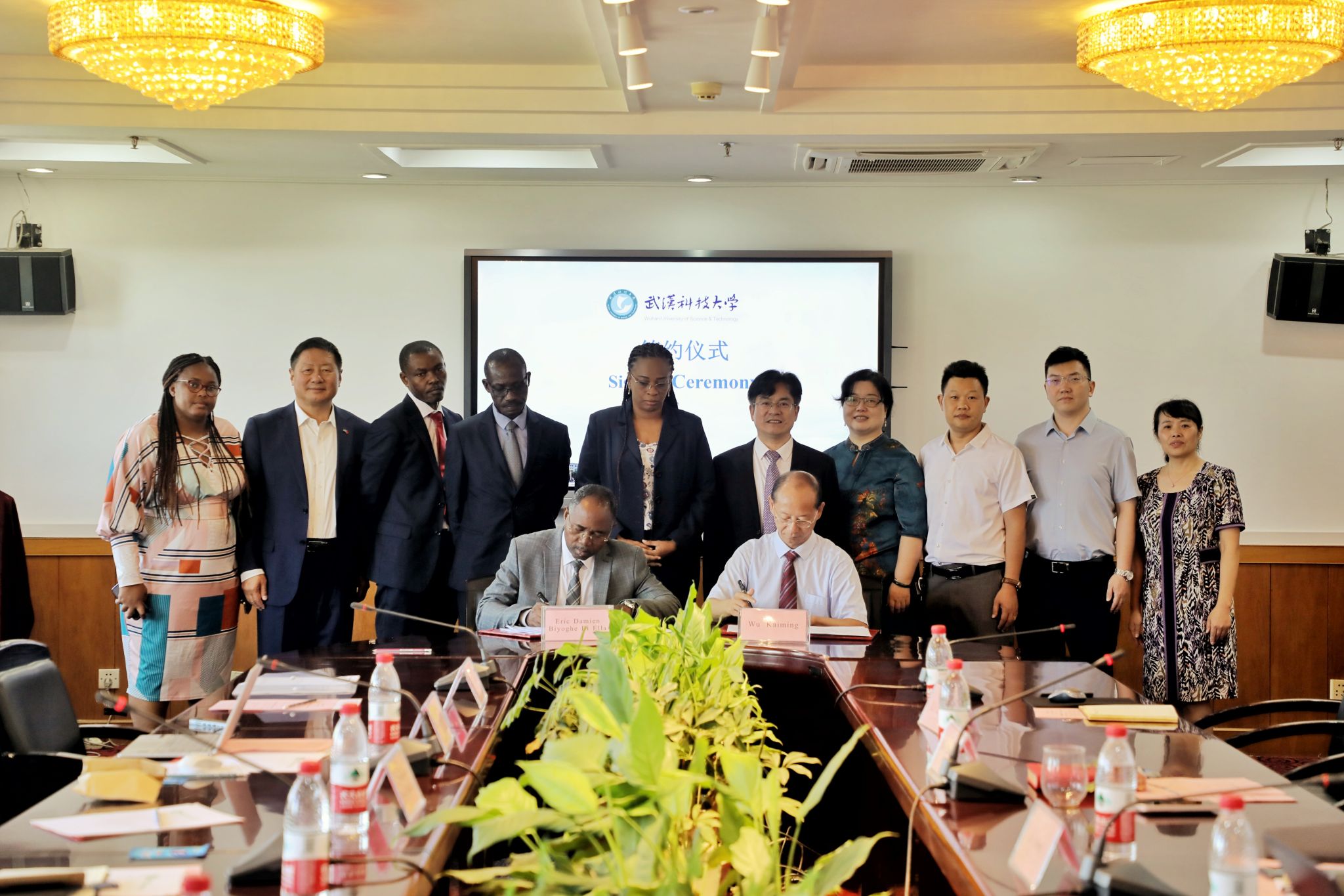Eric Damien Biyoghe Bi Ella与吴开明分别代表双方签订意向性合作协议。