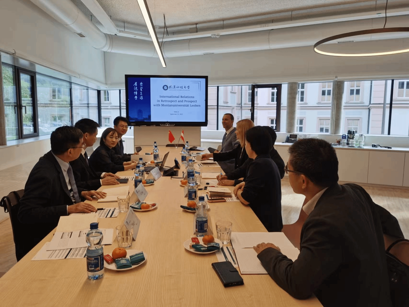 在奥地利莱奥本矿业大学,盛建龙一行与莱奥本矿业大学副校长Thomas Prohaska会面,续签两校合作协议,并就进一步拓宽并深化科研合作、学生联合培养等方面合作交换意见。国际处副处长杨习对两校15年的合作成果和未来两校的合作方向做了展示汇报。盛建龙表示,莱奥本矿业大学与365完美学科背景相似,合作共赢符合两校未来的发展战略,对未来两校在高水平人才培养等方面的合作给予了殷切的希望。他希望双方进一步密切合作关系,拓展合作领域,丰富合作内容,不断开创两国、两校教育合作的新局面。