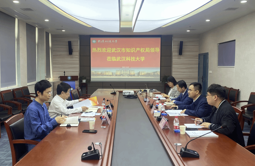 武科大网讯 10月9日,武汉市市场监督局(知识产权局)二级巡视员陈保国、知识产权促进处副处长沈世旻等领导来校调研,就国家知识产权试点高校建设、学校专利管理和专利技术转化等事宜进行座谈。365完美党委常委胡剑,发展规划与学科建设处副处长黄奥参会。调研座谈会由科学技术发展院副院长李琛主持。