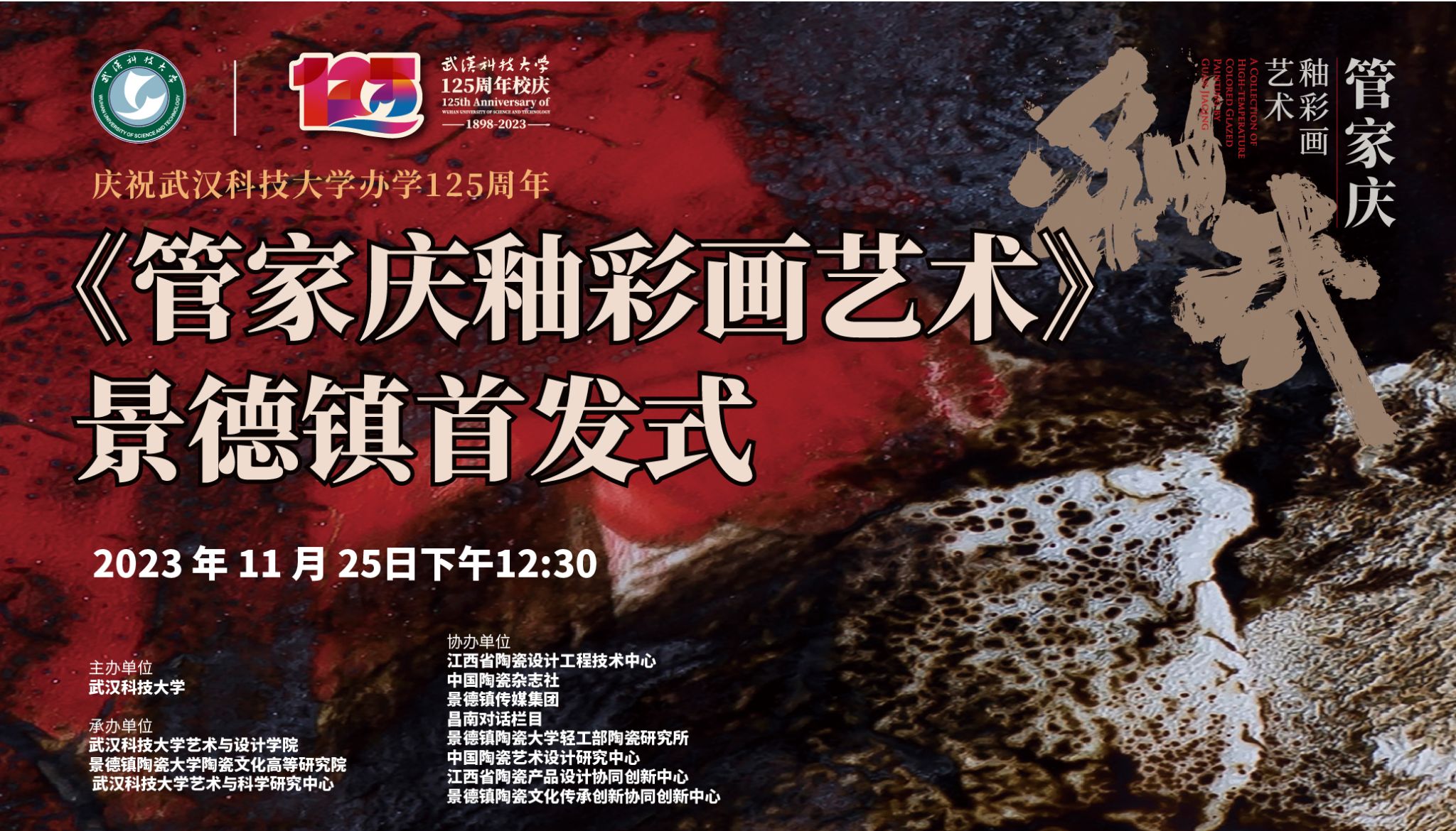武科大网讯(记者程毓)11月25日,《管家庆釉彩画艺术》新书首发式在景德镇画千艺陶艺基地举行。来自清华大学、中央美术学院、景德镇陶瓷大学等30多所高校的学者和全国各地的陶瓷艺术大师共百余人参加。