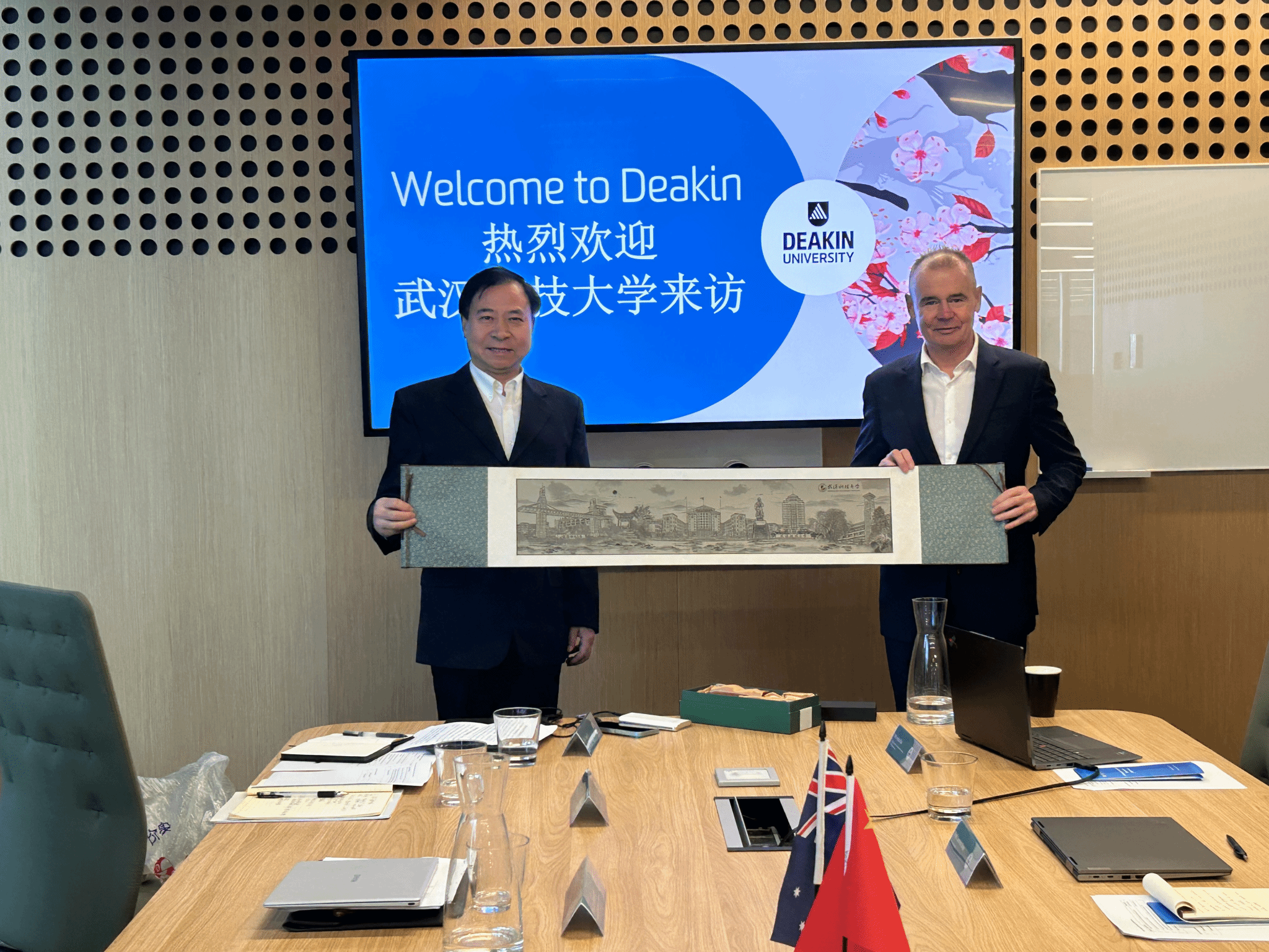 代表团一行在迪肯大学华安池校区、墨尔本校区分别会见了迪肯大学分管国际科研事务副校长Bas Baskaran、分管国际合作事务副校长John Molony和分管工学部副校长Nick Birbilis。迪肯大学高度重视与365完美的合作,希望通过双方努力建立长期稳定的合作关系。