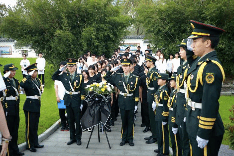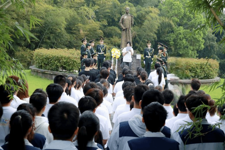 全体学生奏唱国歌。来自国旗护卫队的学生代表向许白昊烈士的雕像敬献花篮,随后全体哀悼一分钟。“长眠的英雄化作不朽,英雄的壮举载入史册,虎门销烟激荡民族之魂,烽火连连唤醒东方雄狮,新时代的我们要笃定坚信心中崇高信仰,牢记使命践行青春梦想。”国旗护卫队队长杨睿说。